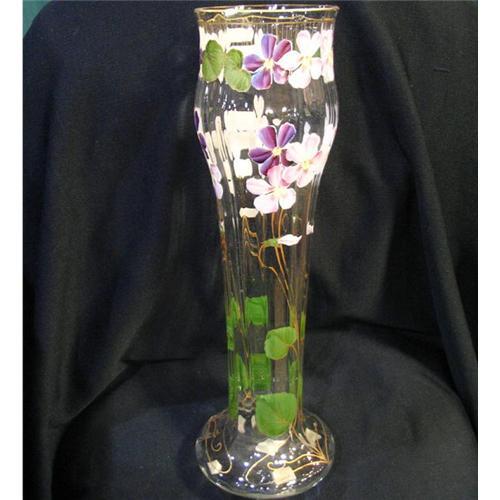 Moser ribbed crystal vase decorated with violets. 15 3/4" tall. Excelent condition, 1858-1924.