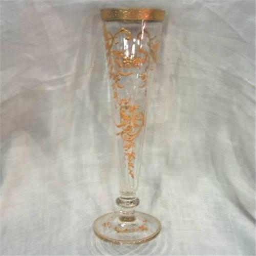 <table width="100%" border="0" cellspacing="0" cellpadding="4"><tr><td><em> </em></td></tr><tr> <td width="100%"> Moser clear footed vase with gold enameling. Excelent condition, 10 1/4" tall, 1858-1924. </td></tr><tr> <td> </td></tr><tr> <td>Reference #: 4x59x31</td></tr><tr><td>Condition:Excelent</td></tr><tr><td>Year:1858-1924</td></tr><tr><td>Country:Austria</td></tr><tr><td>Maker:Moser</td></tr><tr><td>Height:10.25</td></tr><tr><td>Title:Moser Vase</td></tr><tr><td>Materials:Glass</td></tr><tr><td>Type:Enemaling</td></tr><tr><td>Location:Marshall, Mi</td></tr></table>