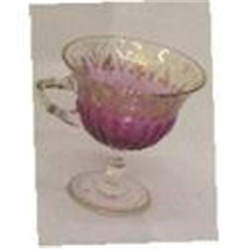 This is A very nice Cranberry to clear color footed Cup in very good condition (Little normal worn out on the Gold gilting and not signed) H:3.1/2" W: including Handle is 4.1/2" D:3.1/2".