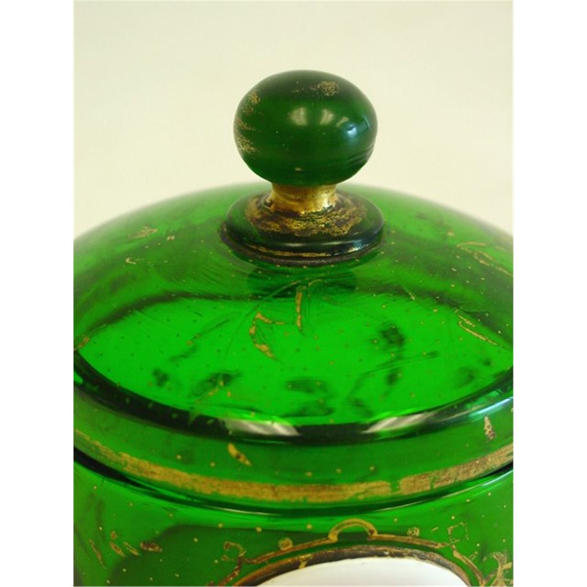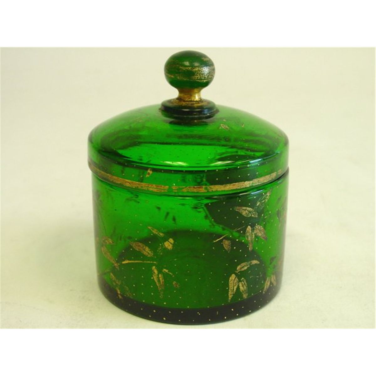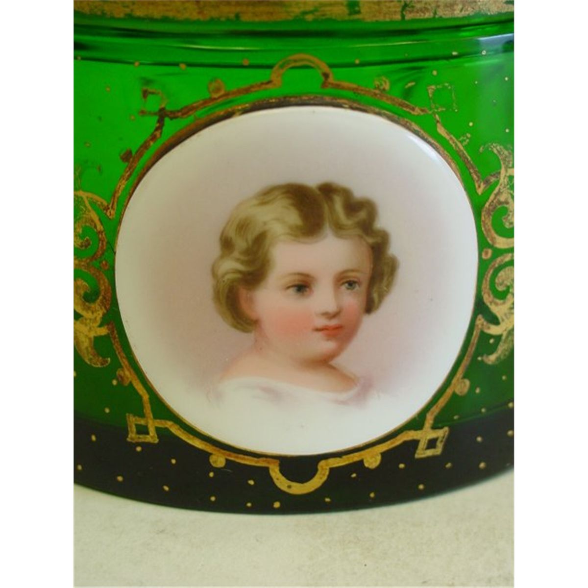 Green with hand painted medallion. Approx. 4.5" H Please read our terms of sale.