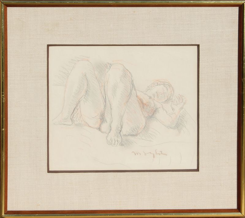 Moses Soyer, Reclining Nude, Pastel Drawing
