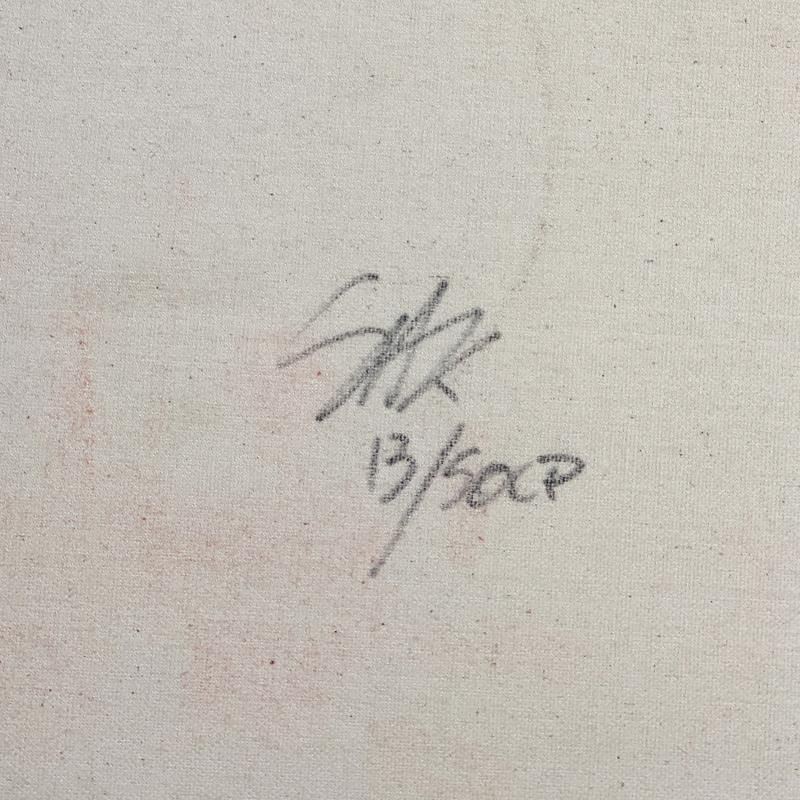 "Moses and the Ten Commandments" is limited edition hand pulled silkscreen unique mixed media on canvas by Andy Warhol protege Steve Kaufman (1960-2010). This piece is numbered and hand signed inverso and includes a letter of authenticity. As is common wi
