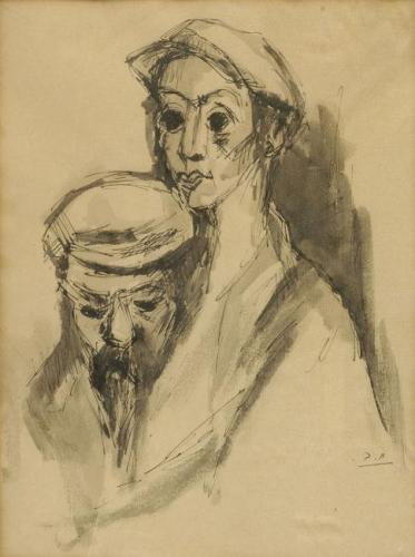 Moshe Brenstein, B. 1920, Yeshiva Students, Wash, 44x33 cm, Signed with the initials, , , , ,