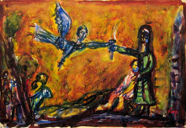 Moshe Castel, Israeli Art, 1909 - 1991, The Sacrifice of Isaac, Watercolor, 36x51cm, Signed., , , , ,