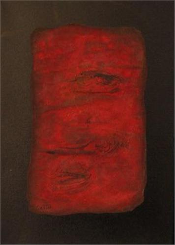 Moshe Castel, 1909 - 1991, Wailing Wall Stone, Oil and Basalt on canvas, 34x24 cm, Signed., , , , ,