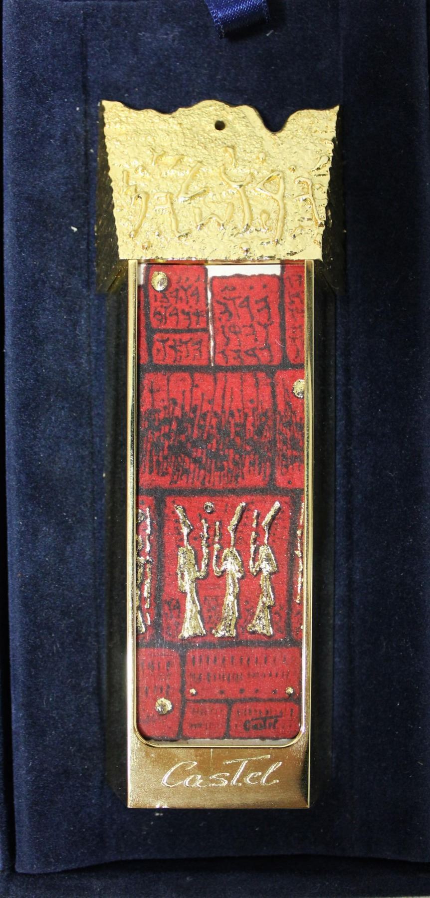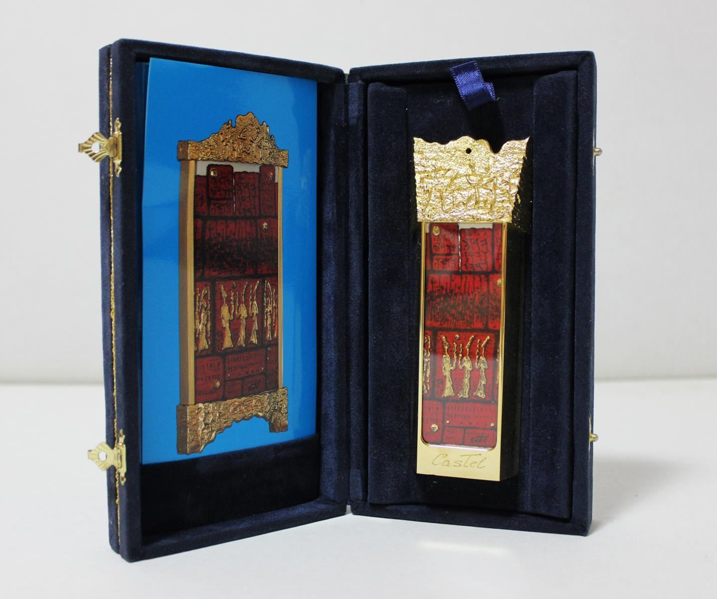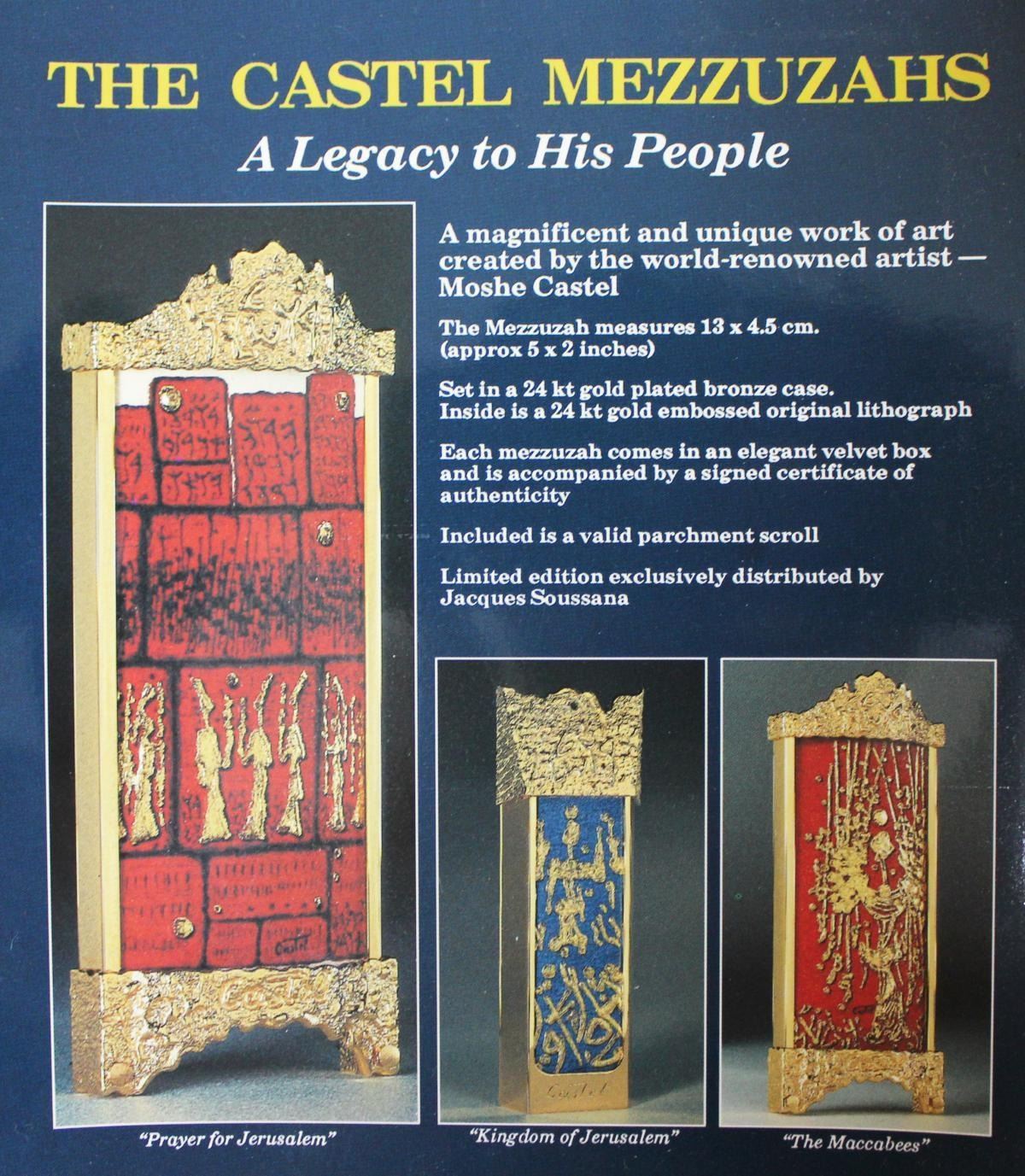 Artist: Moshe Castel. Medium: Mezzuzah. Size (Unframed): 5" x 2". Additional: Set in a 24kt gold plated bronze case. Reference# 10603.