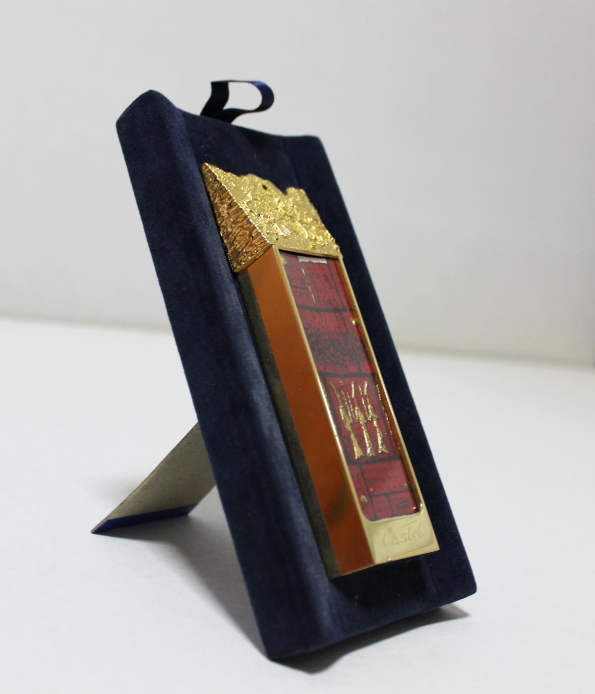 Artist: Moshe Castel. Medium: Mezzuzah. Size (Unframed): 5" x 2". Additional: Set in a 24kt gold plated bronze case. Reference# 10603.