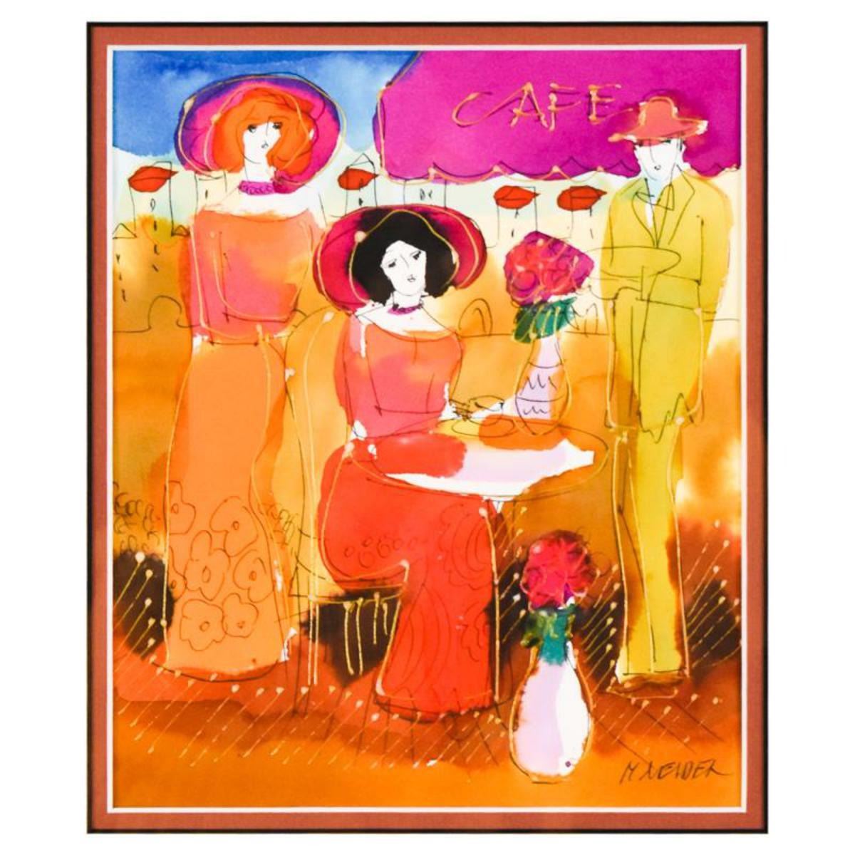 Moshe Leider, Framed Original Mixed Media Watercolor Painting, Hand Signed with Letter of Authentici