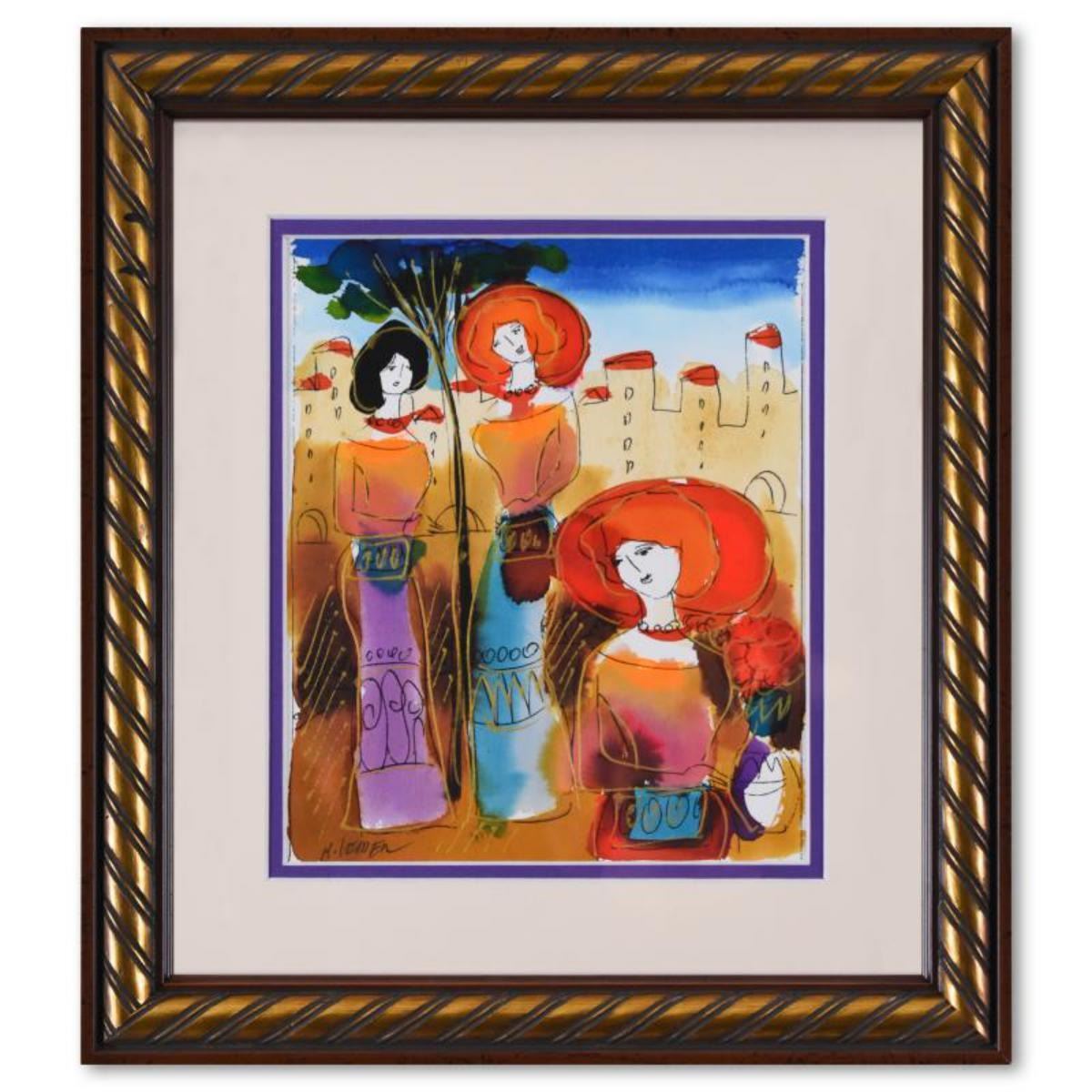 Moshe Leider, Framed Original Mixed Media Watercolor Painting, Hand Signed with Letter of Authentici
