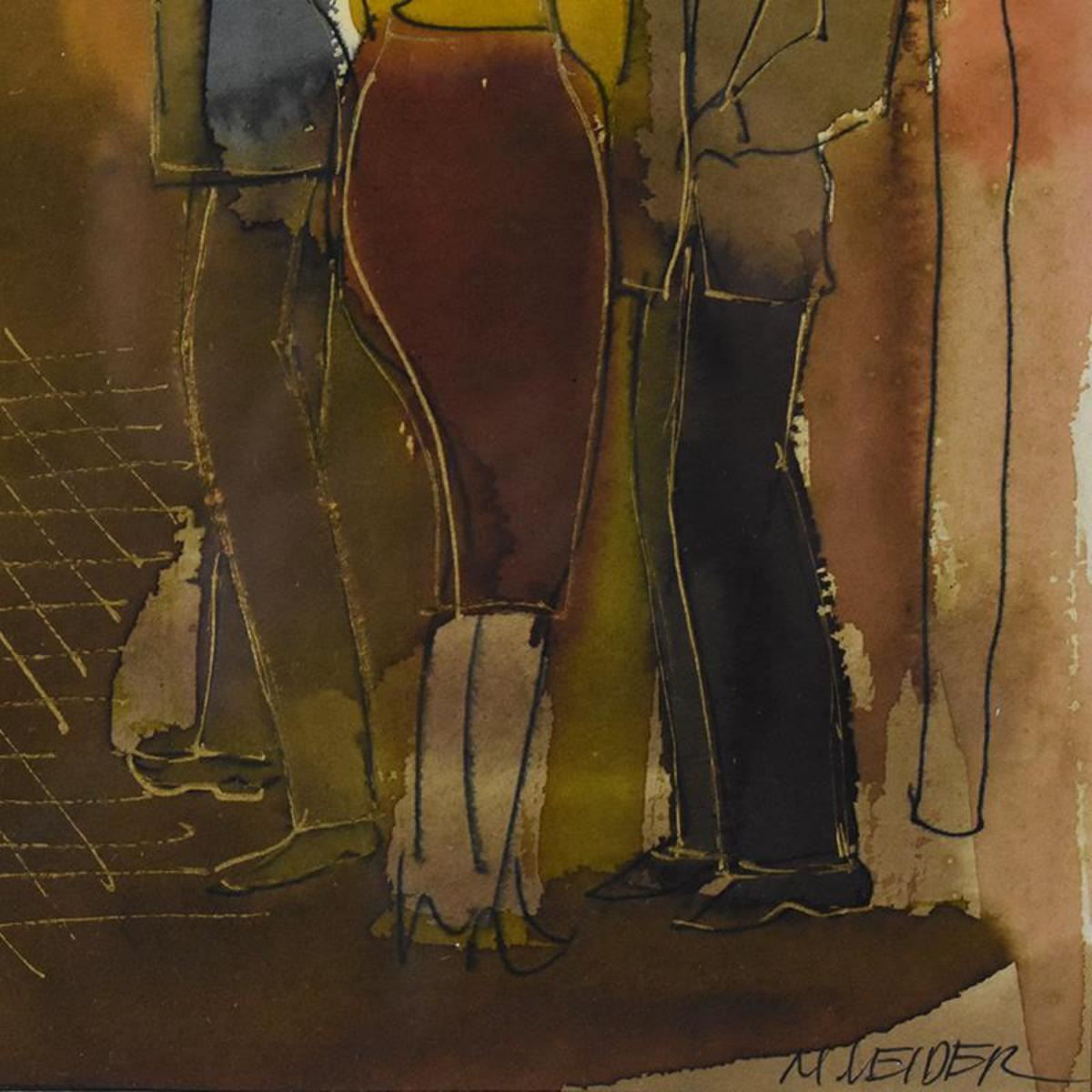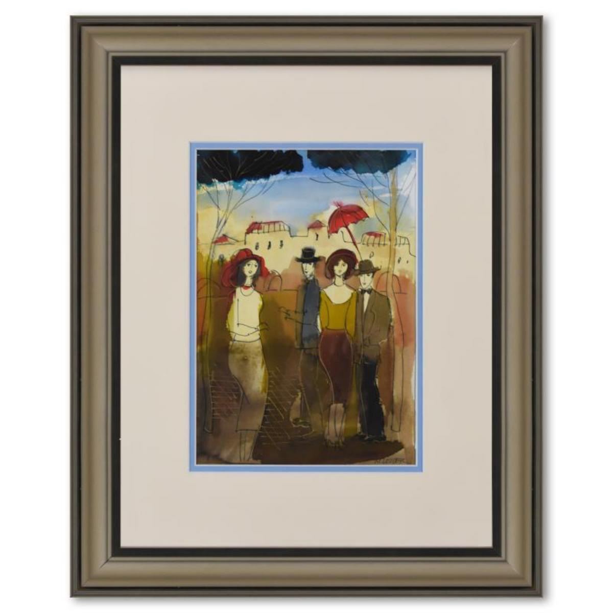 Moshe Leider, Framed Original Mixed Media Watercolor Painting, Hand Signed with Letter of Authentici