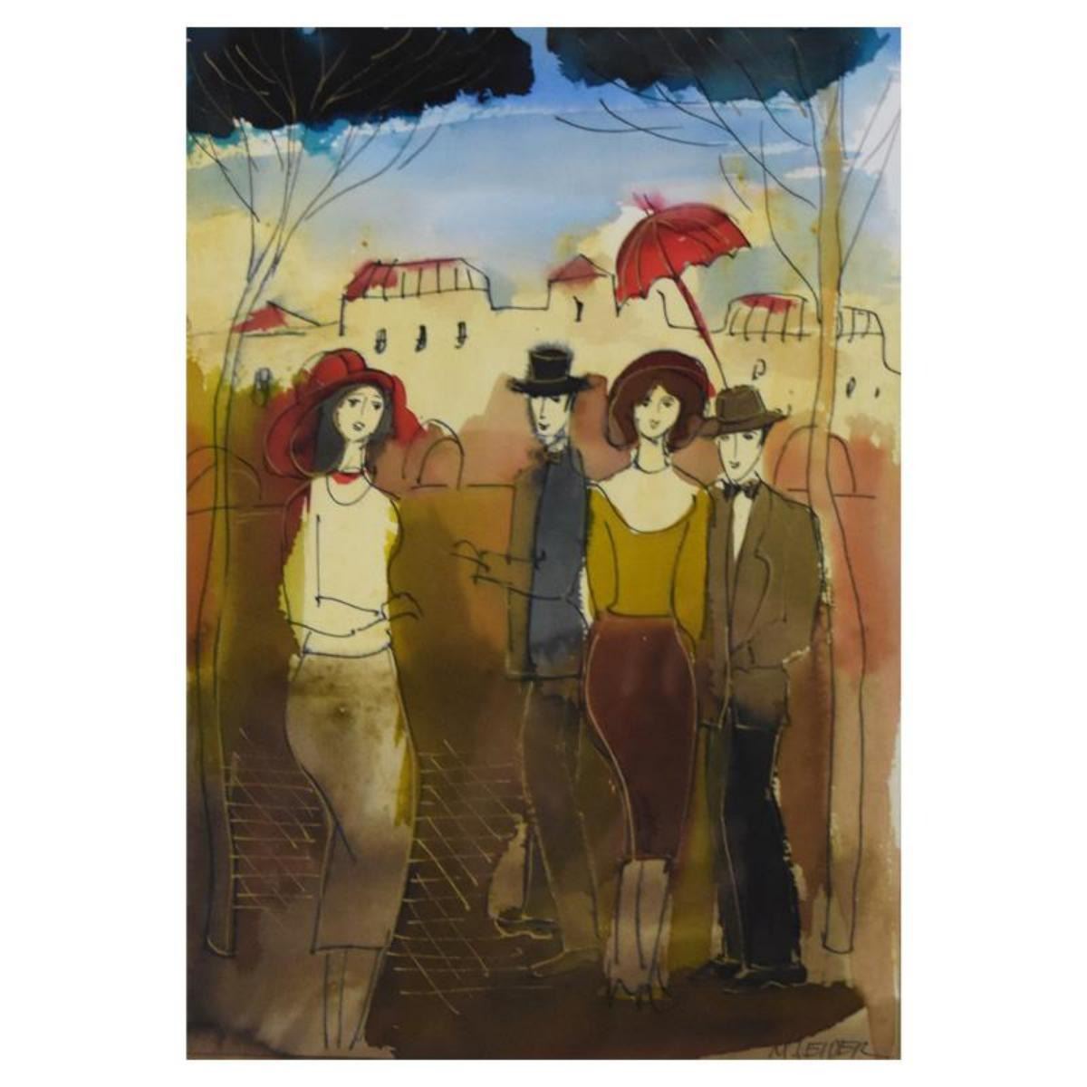 This is an original mixed media watercolor painting on paper by Moshe Leider, hand signed by the artist. This piece comes custom framed. Includes Letter of Authenticity. Measures approx. 17.5" x 21.5" (frame), 8" x 11.5" (image). Reference #: 248543