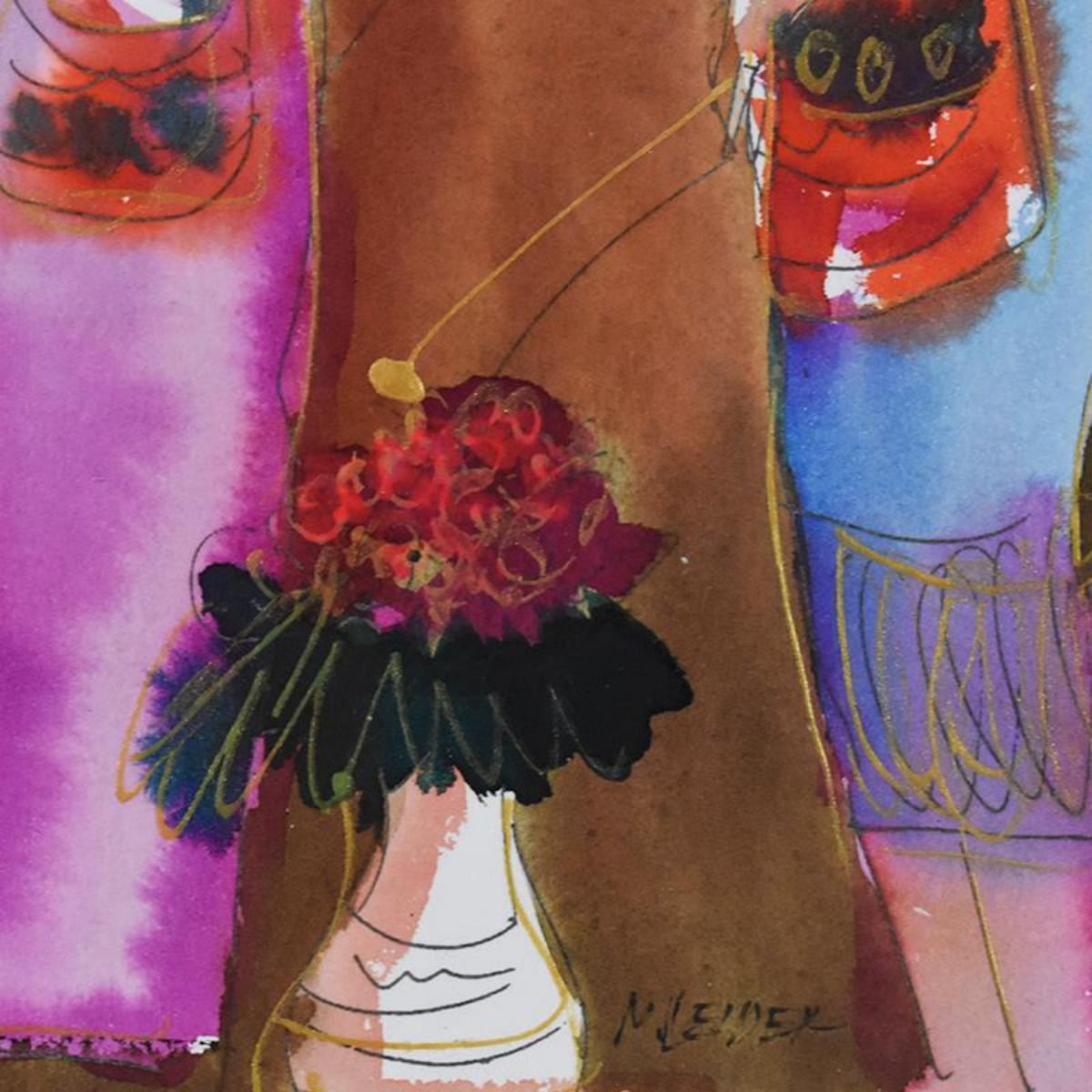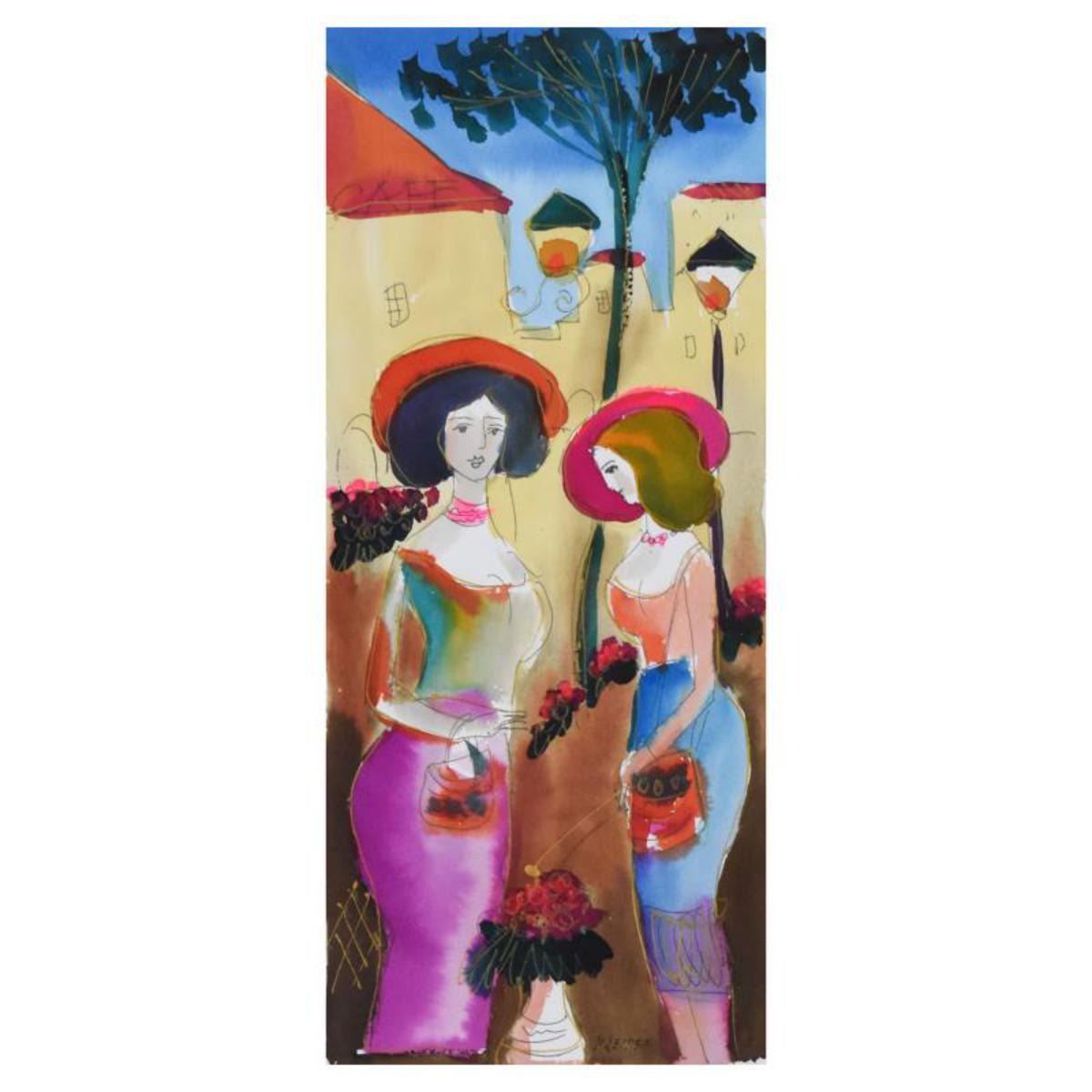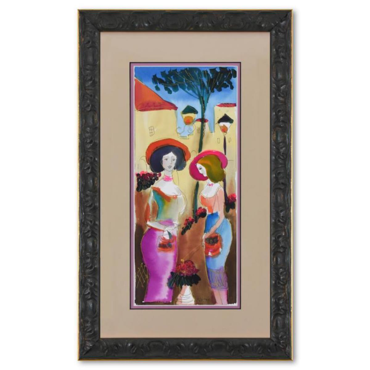 Moshe Leider, Framed Original Mixed Media Watercolor Painting, Hand Signed with Letter of Authentici
