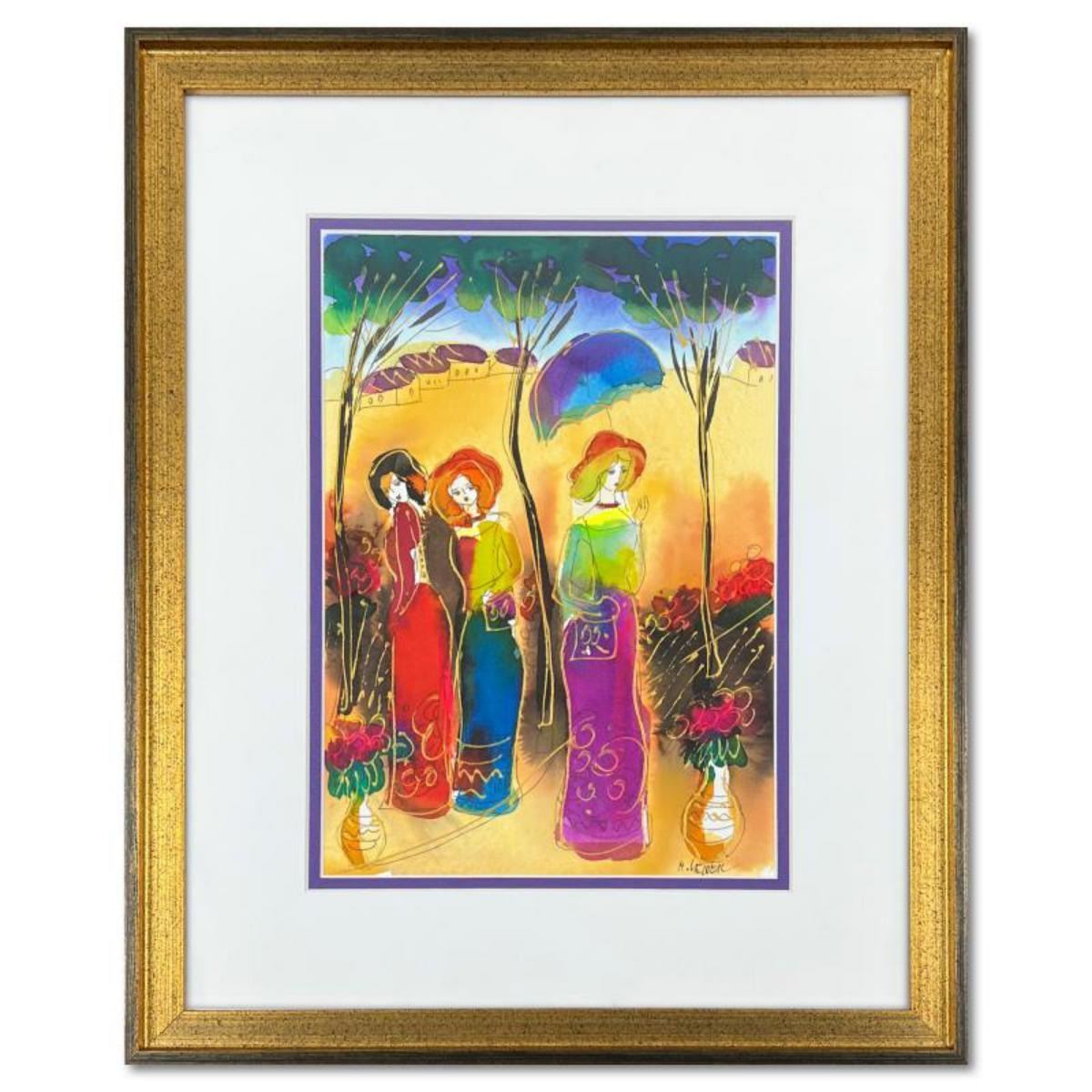Moshe Leider, Framed Original Mixed Media Watercolor Painting, Hand Signed with Letter of Authentici