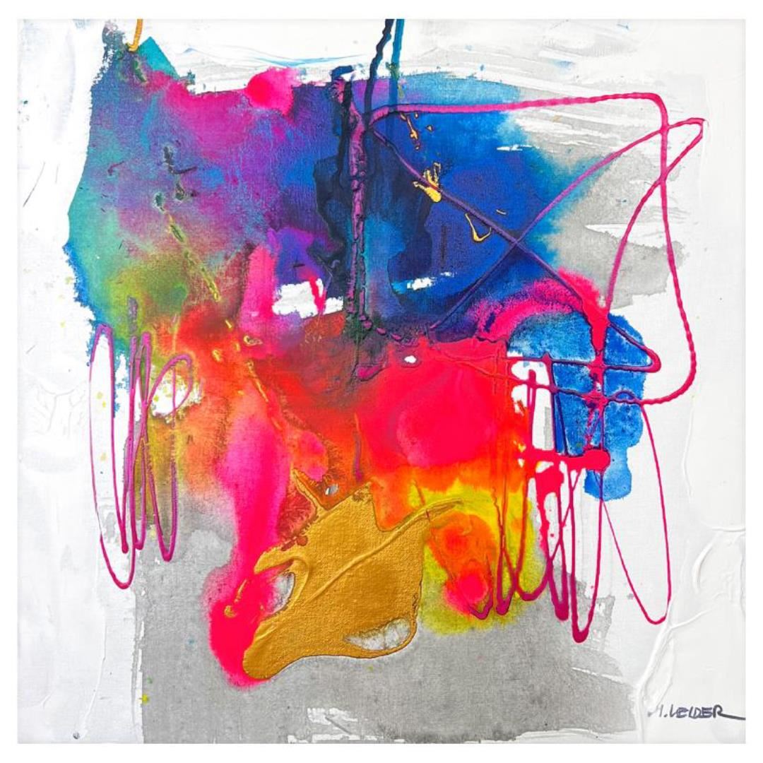 This is an original painting, acrylic on canvas by Moshe Leider. The piece is hand signed by the artist and includes a letter of authenticity. Measures approximately 15.5" x 15.5" (image).