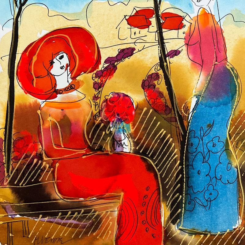 This is an original mixed media watercolor painting on paper by Moshe Leider. Hand signed by the artist, this piece comes custom framed and includes a Letter of Authenticity. Measures approximately 16" x 15" (frame), 9" x 8" (image).