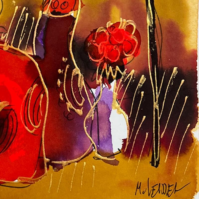 This is an original mixed media watercolor painting on paper by Moshe Leider. Hand signed by the artist, this piece comes custom framed and includes a Letter of Authenticity. Measures approximately 15" x 13.5" (frame), 8" x 6.5" (image).