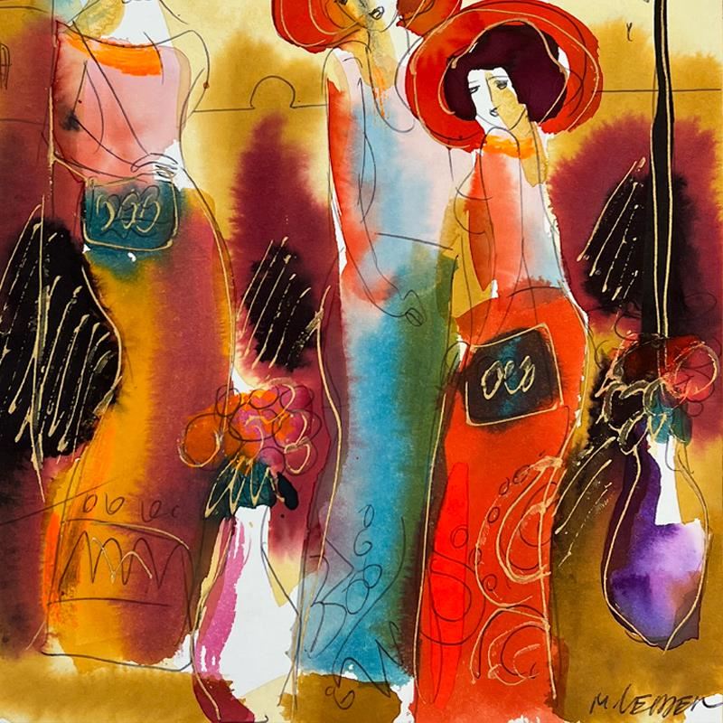 This is an original mixed media watercolor painting on paper by Moshe Leider. Hand signed by the artist, this piece comes custom framed and includes a Letter of Authenticity. Measures approximately 16" x 15" (frame), 9" x 8" (image).