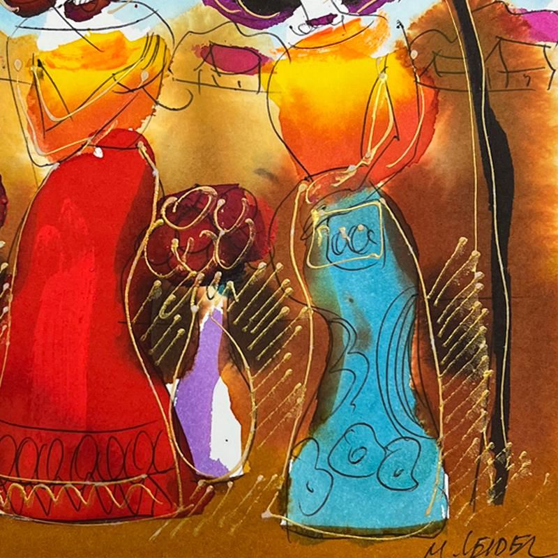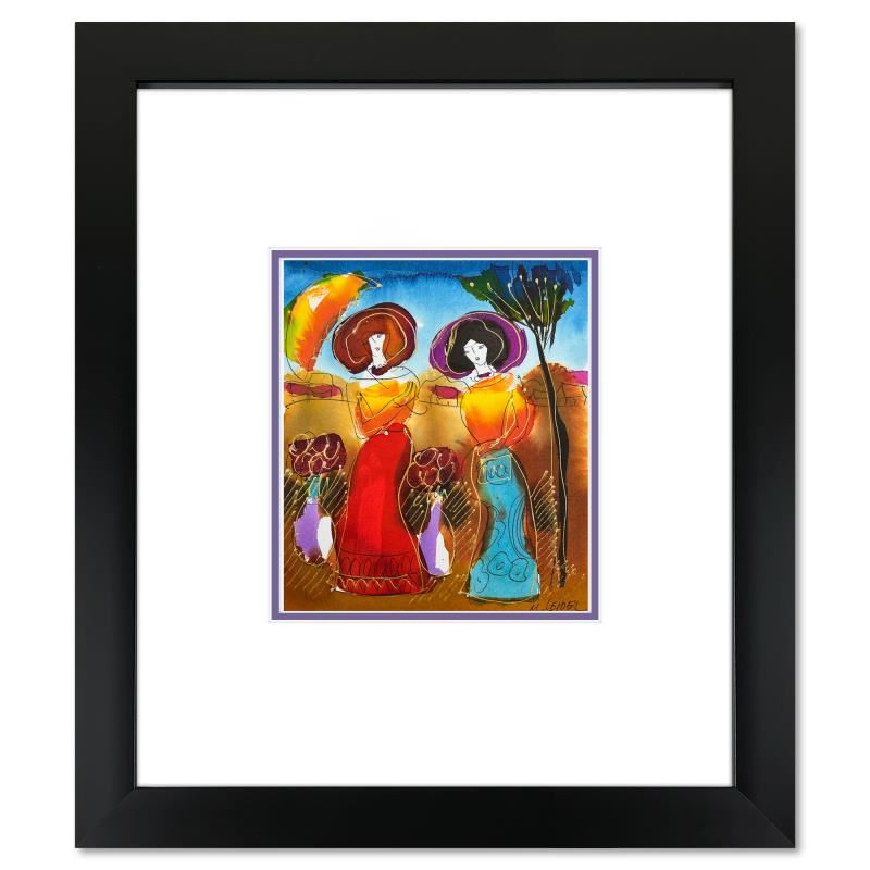 This is an original mixed media watercolor painting on paper by Moshe Leider. Hand signed by the artist, this piece comes custom framed and includes a Letter of Authenticity. Measures approximately 15" x 13.5" (frame), 8" x 6.5" (image).