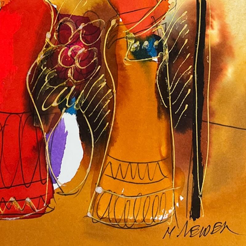 This is an original mixed media watercolor painting on paper by Moshe Leider. Hand signed by the artist, this piece comes custom framed and includes a Letter of Authenticity. Measures approximately 15" x 13.5" (frame), 8" x 6.5" (image).