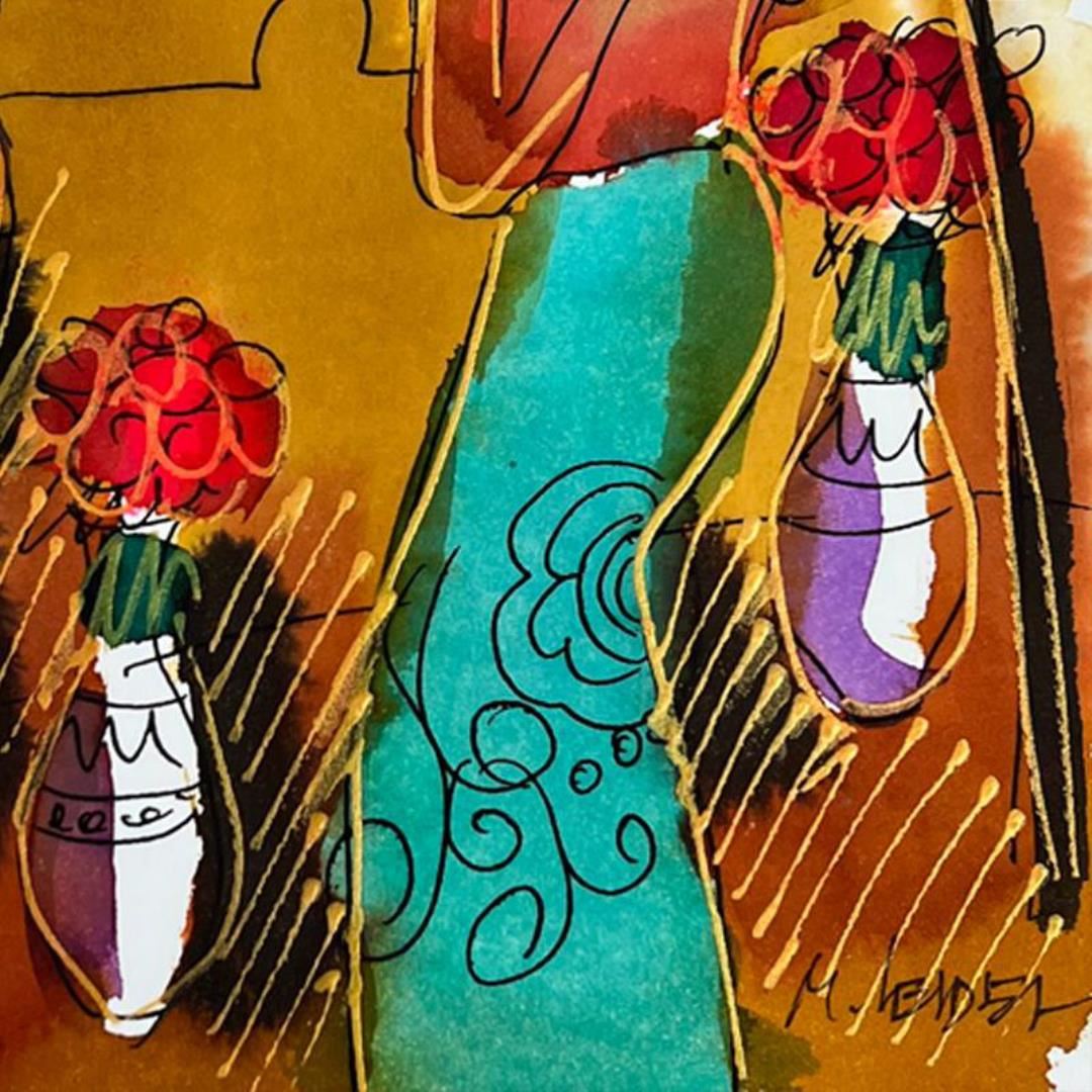 This is an original mixed media watercolor painting on paper by Moshe Leider. Hand signed by the artist, this piece comes custom framed and includes a Letter of Authenticity. Measures approximately 15" x 13.5" (frame), 8" x 6.5" (image).