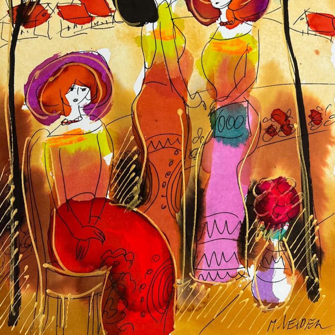 This is an original mixed media watercolor painting on paper by Moshe Leider. Hand signed by the artist, this piece comes custom framed and includes a Letter of Authenticity. Measures approximately 16" x 15" (frame), 9" x 8" (image).