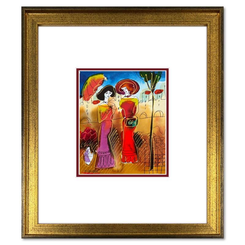 This is an original mixed media watercolor painting on paper by Moshe Leider. Hand signed by the artist, this piece comes custom framed and includes a Letter of Authenticity. Measures approximately 15" x 13.5" (frame), 8" x 6.5" (image).