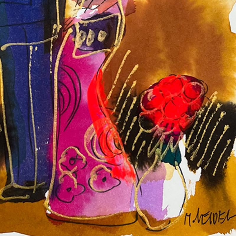 This is an original mixed media watercolor painting on paper by Moshe Leider. Hand signed by the artist, this piece comes custom framed and includes a Letter of Authenticity. Measures approximately 15" x 13.5" (frame), 8" x 6.5" (image).