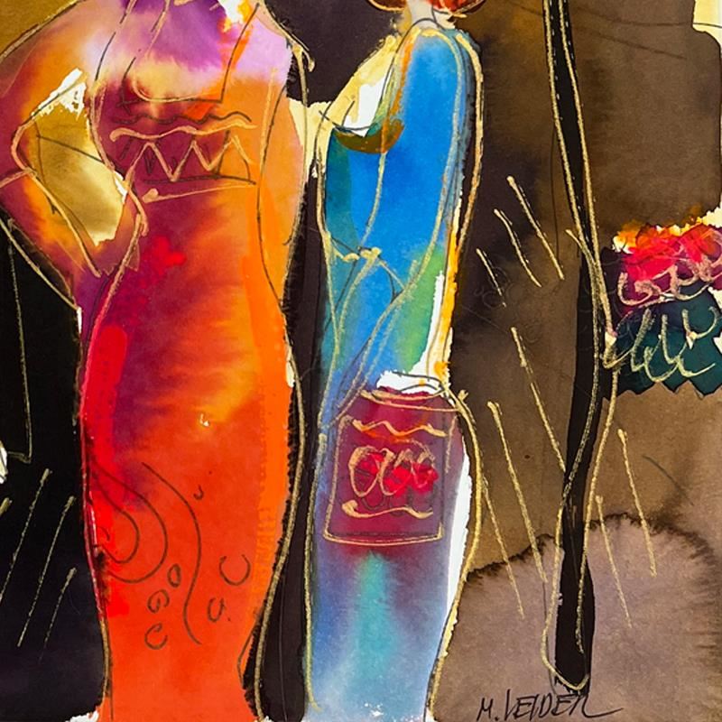 This is an original mixed media watercolor painting on paper by Moshe Leider. Hand signed by the artist, this piece comes custom framed and includes a Letter of Authenticity. Measures approximately 18.5" x 16" (frame), 11.5" x 9" (image).