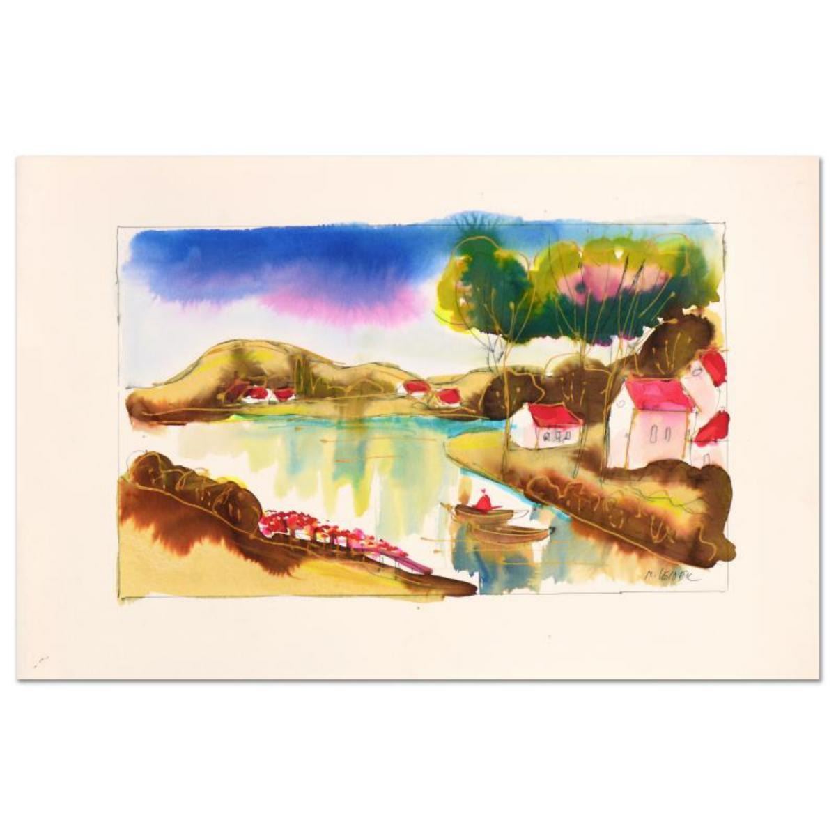 This is an original watercolor painting on paper by Moshe Leider, hand signed by the artist. Includes Certificate of Authenticity. Measures approx. 18.5" x 12" (border), 15" x 9" (image). Reference #: 228403