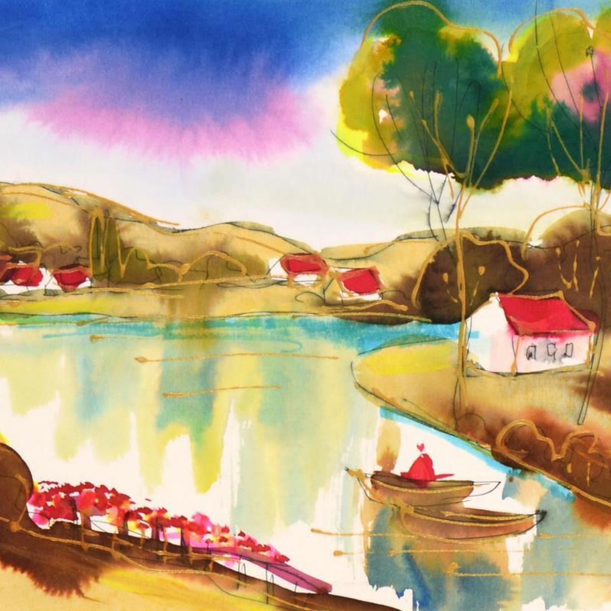 Moshe Leider, Original Watercolor Painting, Hand Signed with Certificate of Authenticity.