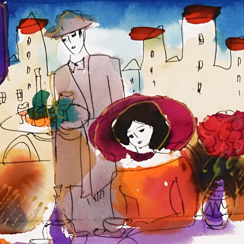 This is an original mixed media watercolor painting on paper by Moshe Leider, hand signed by the artist. This piece comes custom framed. Includes Letter of Authenticity. Measures approx. 16" x 17" (frame), 7" x 9" (image).