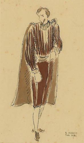 Moshe Mokady, 1902 - 1975, Theater's Custume Design Sketch, Ink and gouache, 23x14 cm, Signed with a stamp, , , , ,