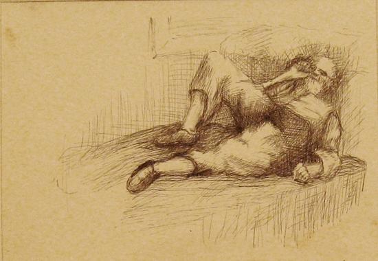 Moshe Proppes, Israeli Art, 1922 - 1985, Rest, Pen drawing, 12.5x17.5cm, Signed., , , , ,
