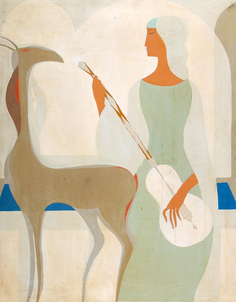 Moshe Proppes, Israeli Art, 1922 - 1985, Young Woman and Doe, Oil on canvas, 80x60cm, Signed., , , , ,
