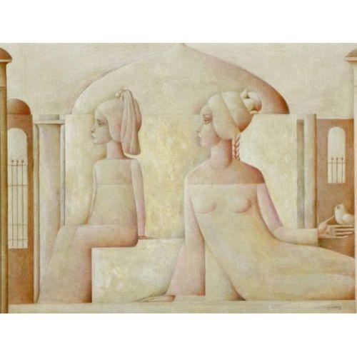<B>Moshe Proppes</B><BR>Israeli painting<BR>1922 - 1985<BR>Women<BR>Oil on wood<BR>29x39cm<BR>Signed.
