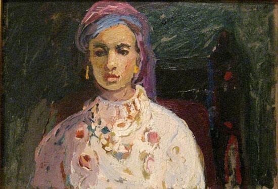 Moshe Rosenthalis, Israeli Art, 1922 - 2008, Oriental Woman, Oil on cardboard, 11.5x16.5cm, Signed., , , , ,