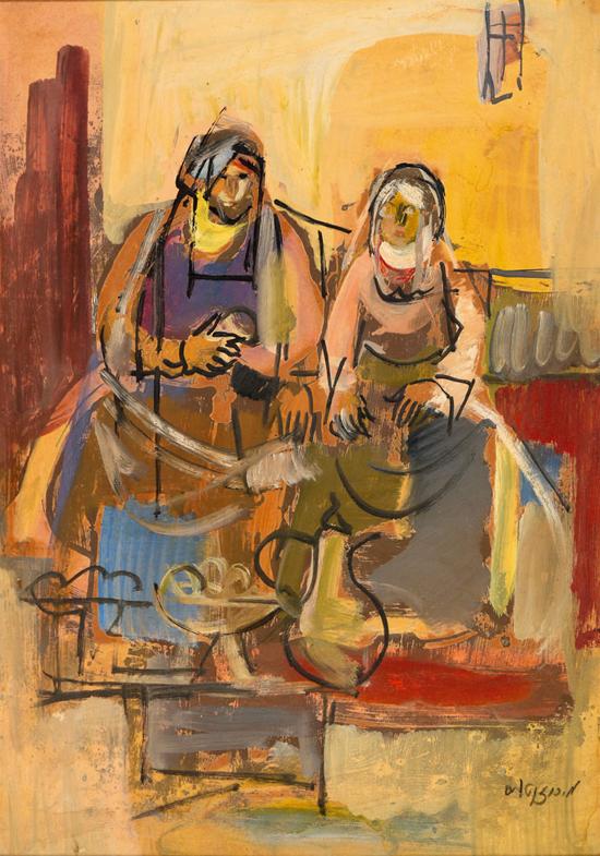 Moshe Rosenthalis, Israeli Art, 1922 - 2008, Peddlers in Jaffa, Oil on cardboard, 48x33cm, Signed., , , , ,