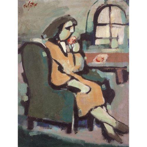 <B>Moshe Rosenthalis</B><BR>Israeli painting<BR>B. 1922<BR>Sitting Woman<BR>Oil on canvas<BR>61x46cm<BR>Signed.