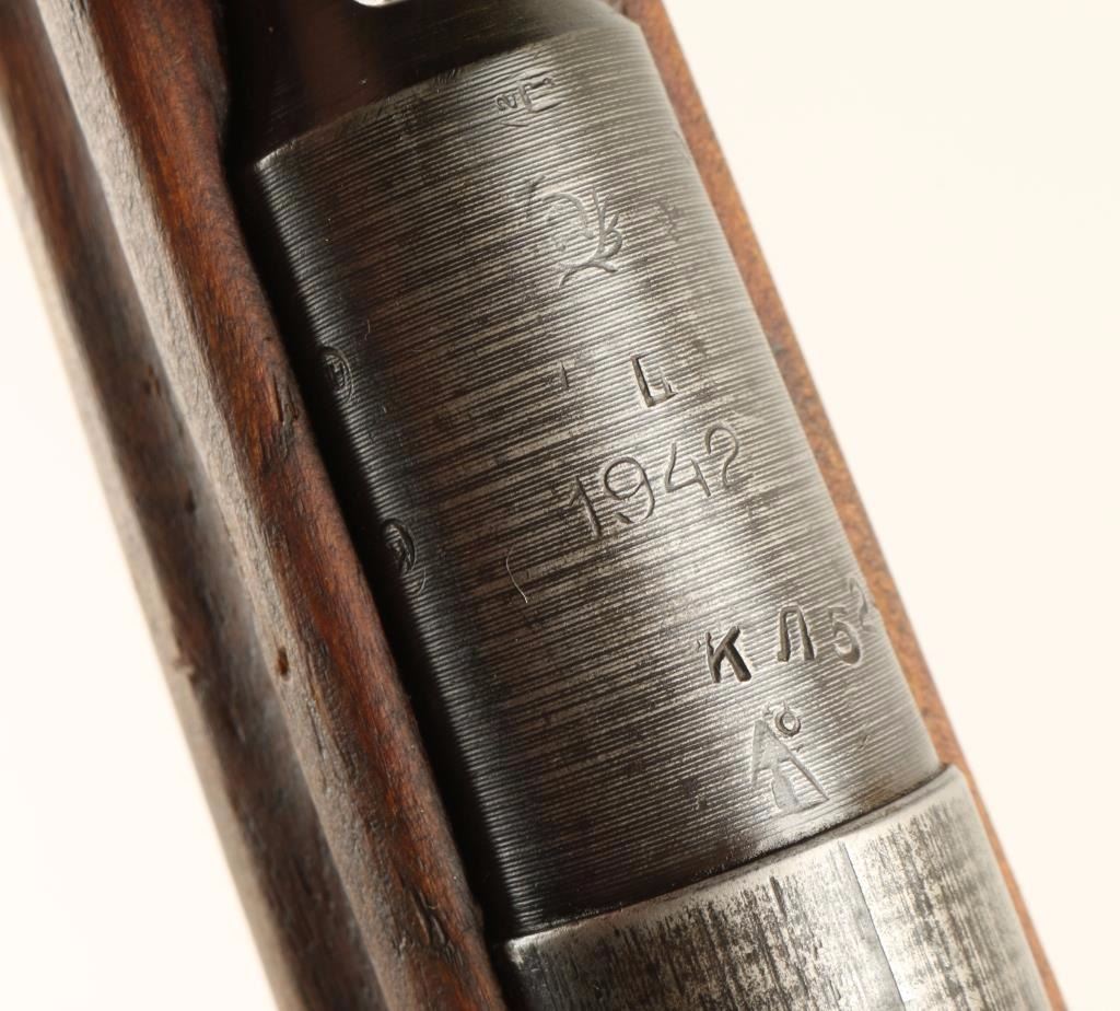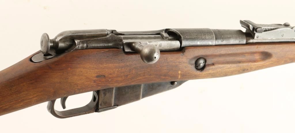 Blued, bolt-action Soviet military rifle with a 29" barrel, 1942 breech date, Izhevsk arsenal marks, CAI import marks, mismatched serial numbers, cruciform spike bayonet and wood stock. No cleaning rod. Bluing is worn with edge wear and scratches. Bore is frosty with lots of rifling. Action works well. Wood is bare with rubs and scratches. Condition is fair to good. *Modern Firearm*