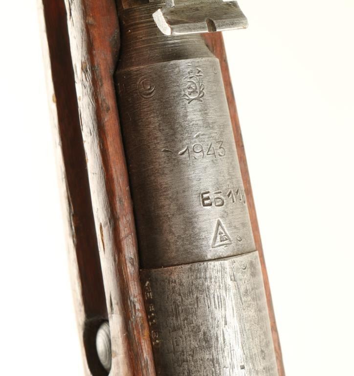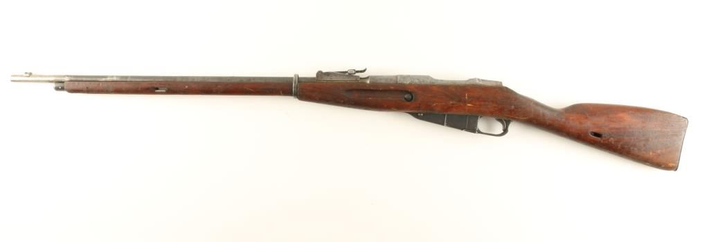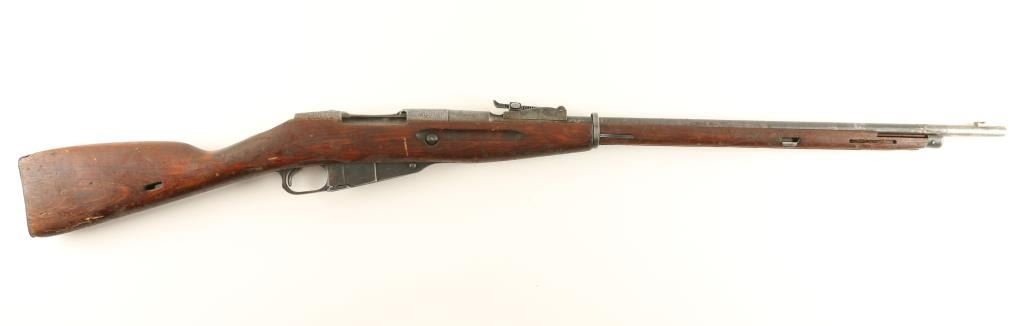 Russian military bolt action parts chambered in 7.62x54Rmm, circa 1943. Featured a blued finish, Izhevsk marked 28.7" tapered barrel, no front sight, graduated rear sight to 2,000 meters, no bolt, internal box magazine, one barrel band and a straight grip wood shoulder stock with metal buttplate. Matching serial numbers on barrel and receiver. Import marks on barrel. Finish is approximately 60% intact showing heavy wear. Bore is very dark with good rifling and shoulder stock is fair. Condition is near good. ***C&R Firearm*** ***Modern Firearm***