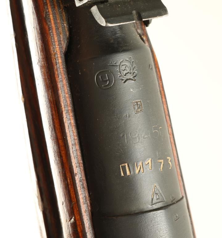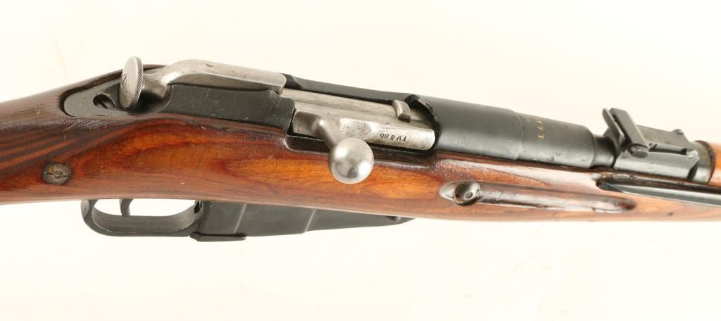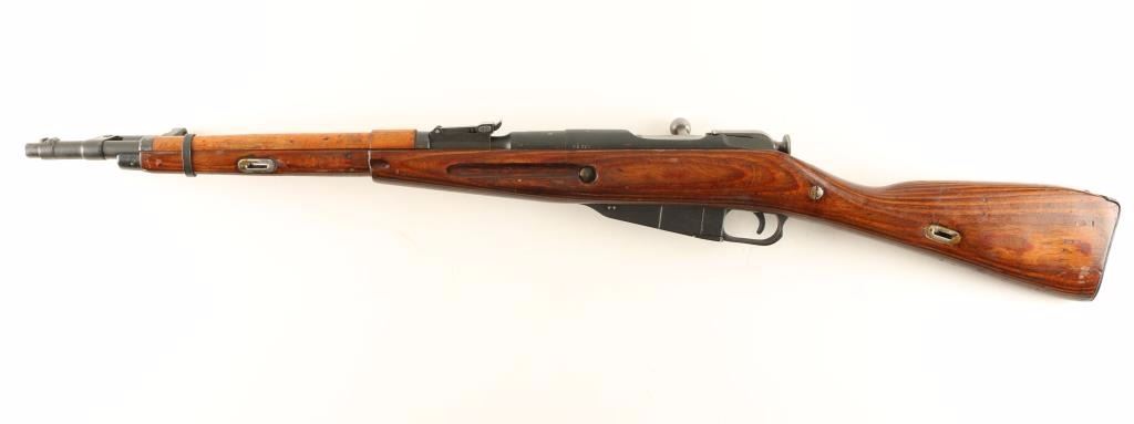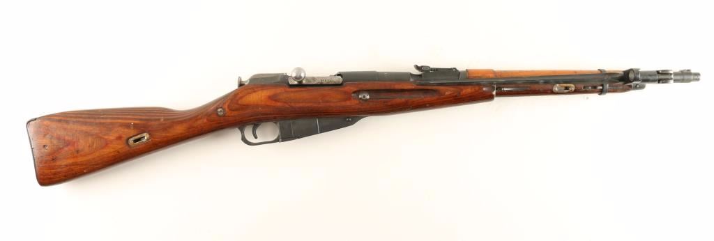 Reconditioned Russian military bolt action service rifle chambered in 7.62x54R, circa 1945. Features a matte blued finish, Izhevsk marked 20.25" barrel, no front sight, graduated rear sight to 1,000 meters, folding bayonet, one barrel band, 5 round fixed magazine, straight bolt handle, smooth wood handguard and laminated wood straight grip shoulder stock with metal buttplate. Matching serial numbers on barrel, buttplate, receiver & floorplate. Import marks on barrel. Bayonet does not lock into the folded position. Rifle retains approximately 90% of it's matte finish showing light wear. Action is smooth, bore is blocked(likely cosmoline) and wood stocks are very good. Condition is very good. ***C&R Firearm*** ***Modern Firearm***
