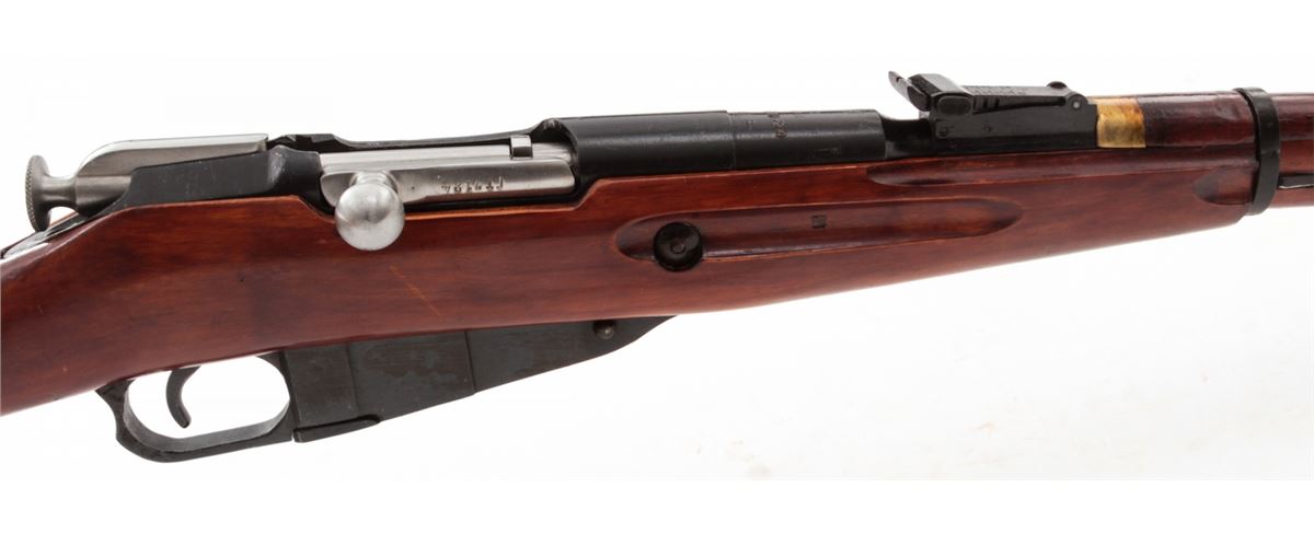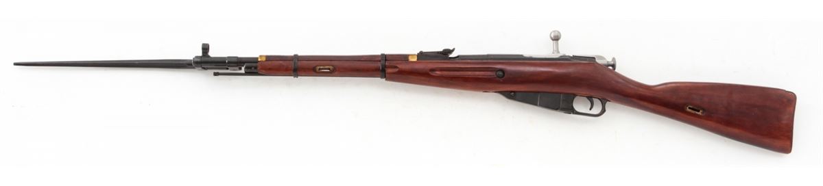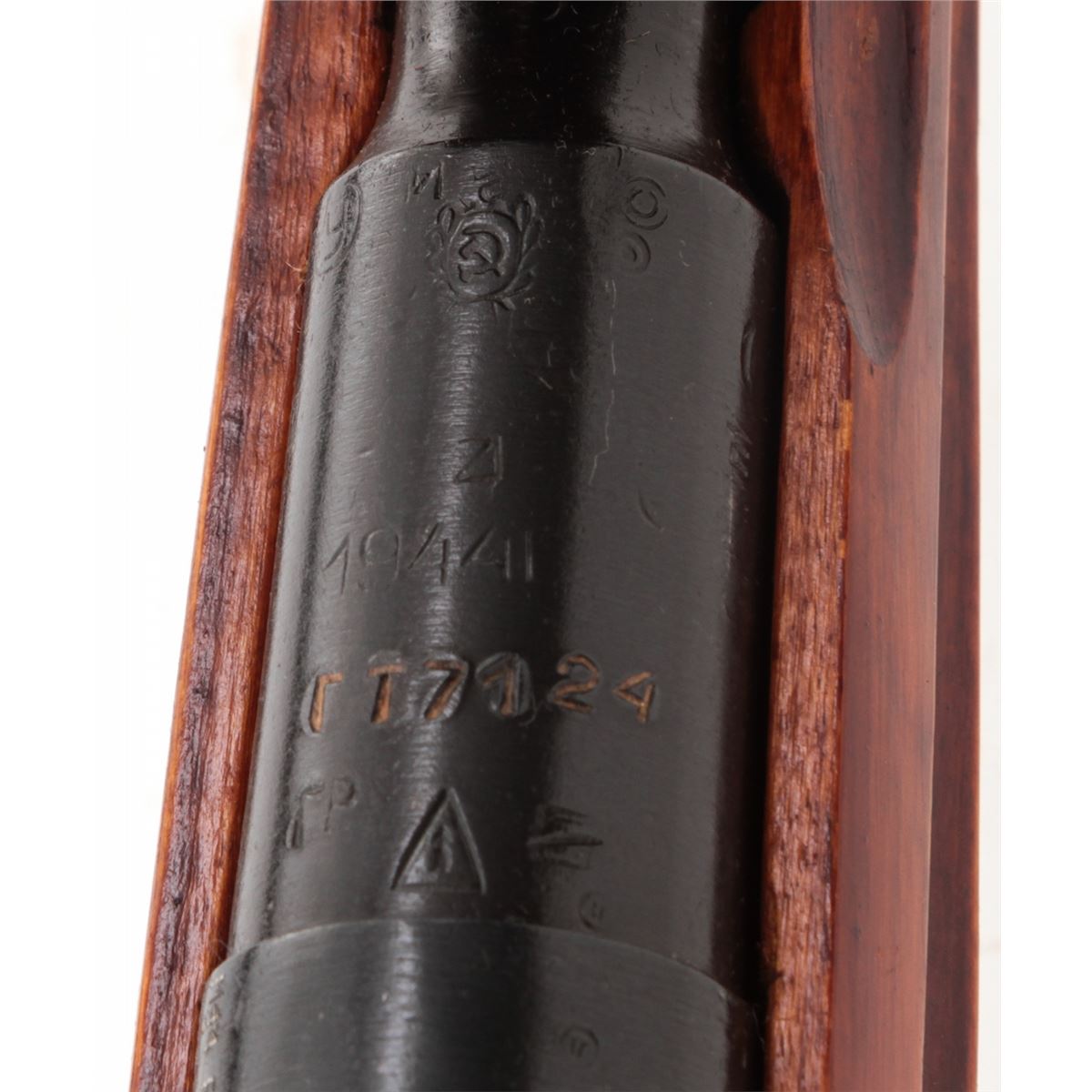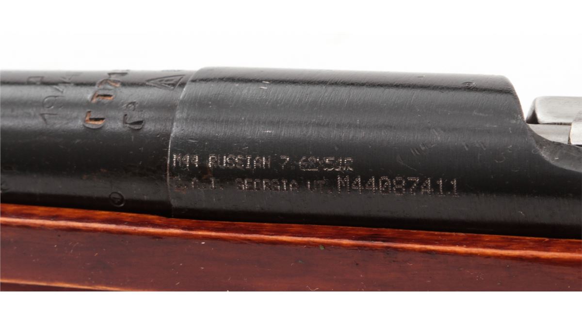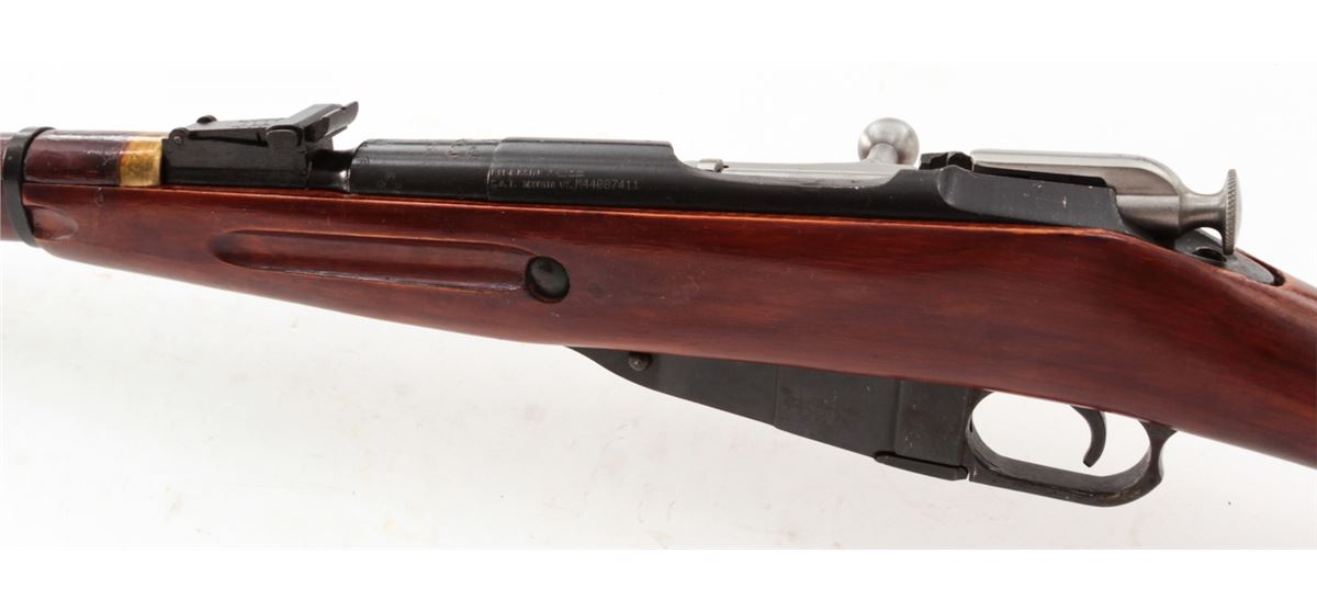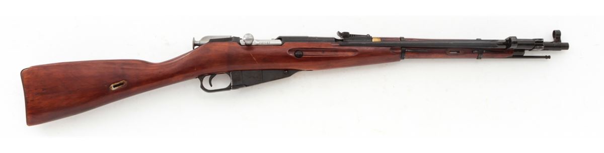 Mosin-Nagant Model 1944 Bolt Action Carbine, #M44087411, 7.62x54R cal., 20.5'' barrel, blue finish, hardwood stock, with sling and cleaning kit. Condition is excellent as imported in the early 1990s. Stock with scuffs to finish. Matching numbered bolt and some mixed parts. Action is crisp, bore is good. Lightly import marked. Est.: $200-$300. (C&R)