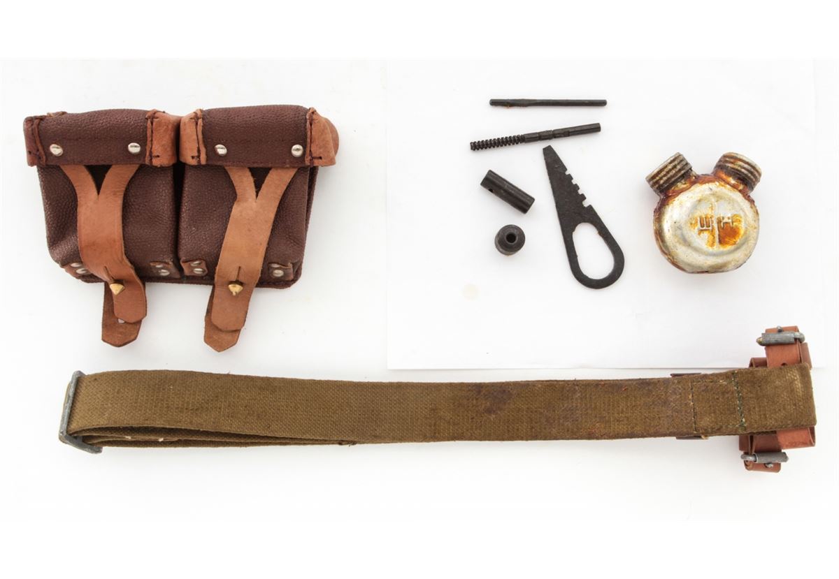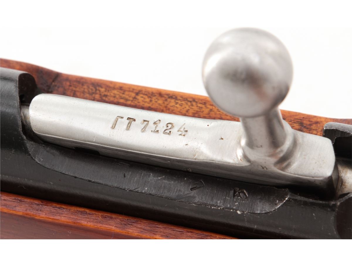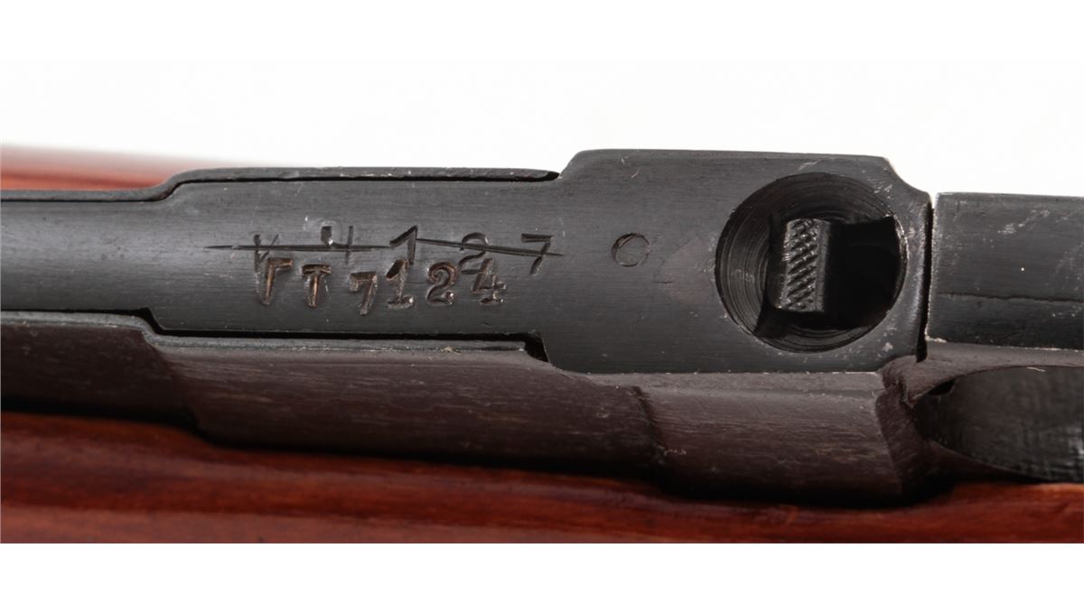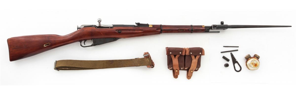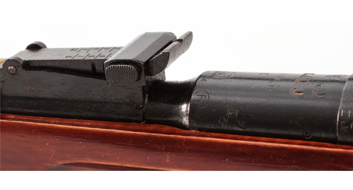 Mosin-Nagant Model 1944 Bolt Action Carbine, #M44087411, 7.62x54R cal., 20.5'' barrel, blue finish, hardwood stock, with sling and cleaning kit. Condition is excellent as imported in the early 1990s. Stock with scuffs to finish. Matching numbered bolt and some mixed parts. Action is crisp, bore is good. Lightly import marked. Est.: $200-$300. (C&R)