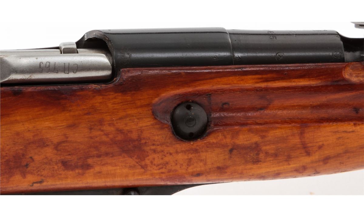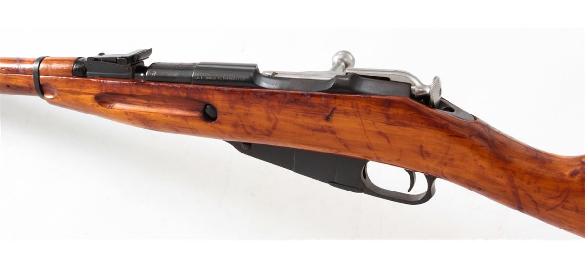 Mosin-Nagant Model 1944 Bolt Action Carbine, #M44081729, 7.62x54R cal., 20.5'' barrel, blue finish, hardwood stock, with sling and cleaning kit. Condition is excellent as imported in the early 1990s. Stock with scuffs to finish. Electric pencil matched bolt and some mixed parts. Action is crisp, bore is good. Lightly import marked. Est.: $200-$300. (C&R)