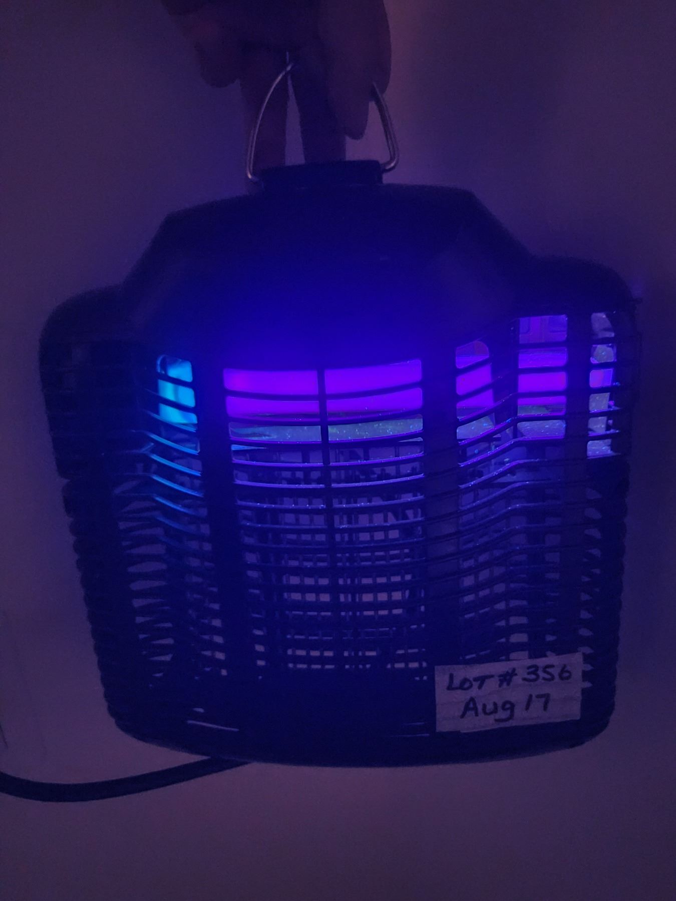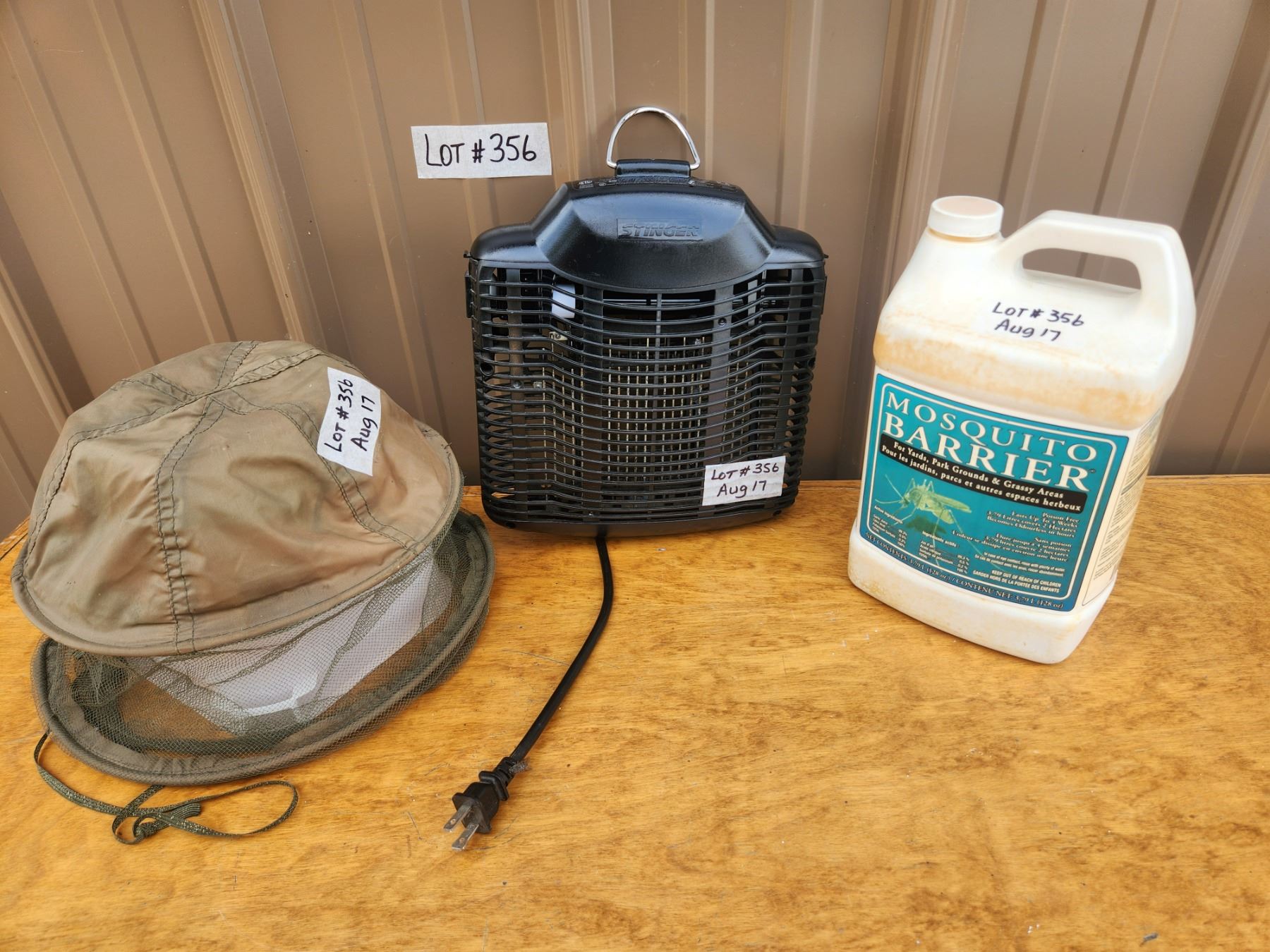 Bug Zapper (works). Nearly full jug of Mosquito Barrier yard spray - non poisonous. Hat with insect netting.