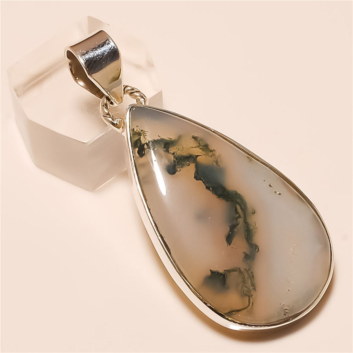 Moss Agate Pendant Solid Sterling Silver Length:2 inch Weight:10 gram #P-304