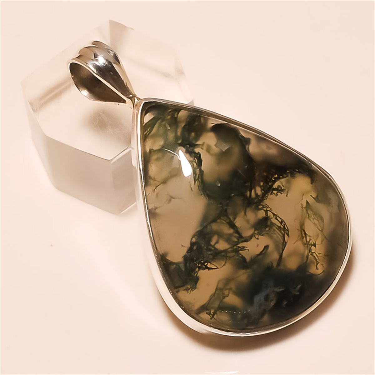 Moss Agate Pendant Solid Sterling Silver Length:1.75 inch Weight:11 gram #P-248