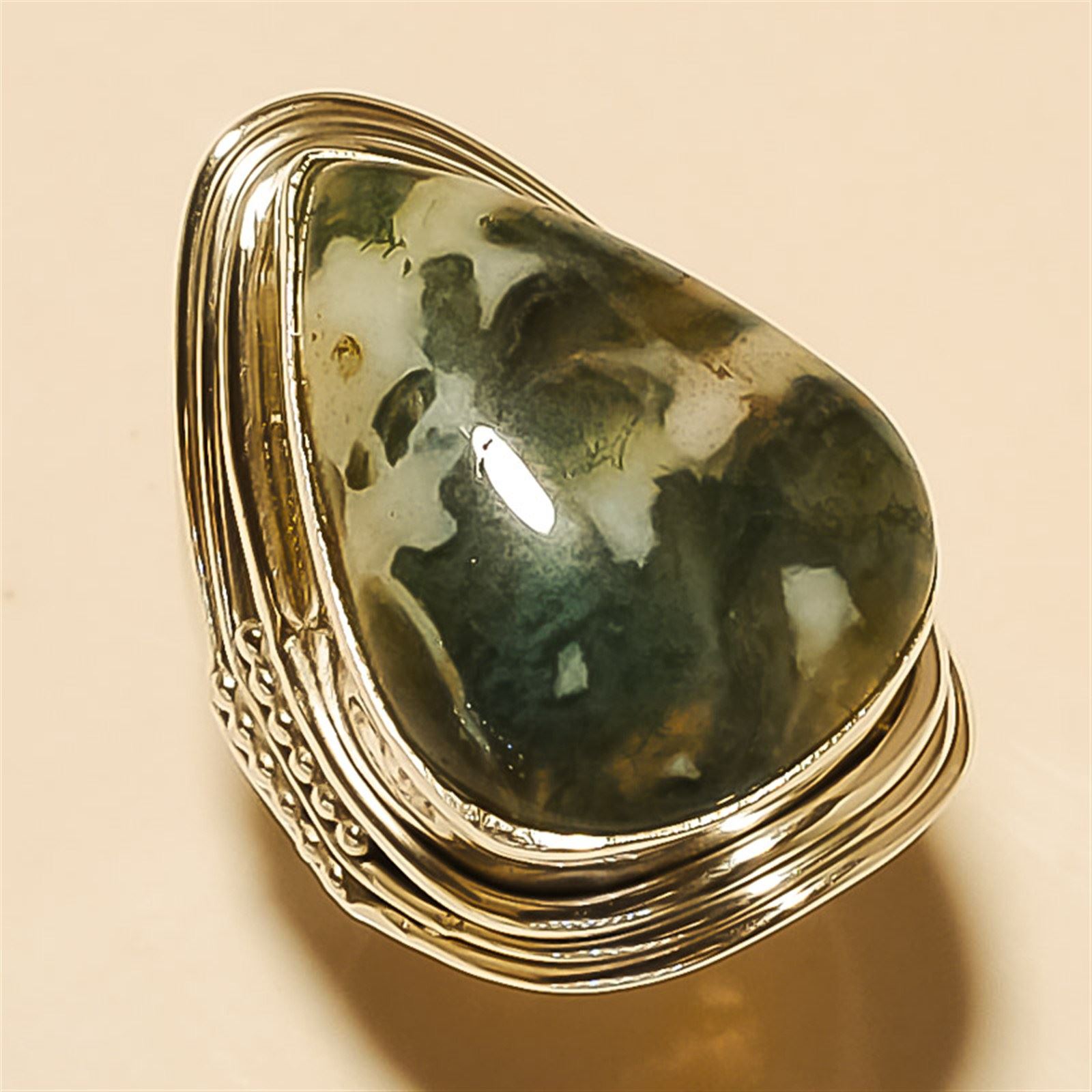 Moss Agate RING Solid Sterling Silver Length:1inch Weight:9gram Size:6.25 #R-261