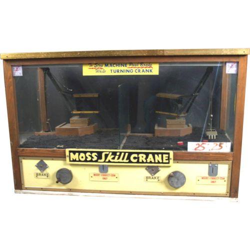 "Moss Skill Cranes" 2 side by side Claw Diggers . After coin is inserted Diggers come to life and will pick up whatever toys are in the case . Then the operator will hand you your prize.