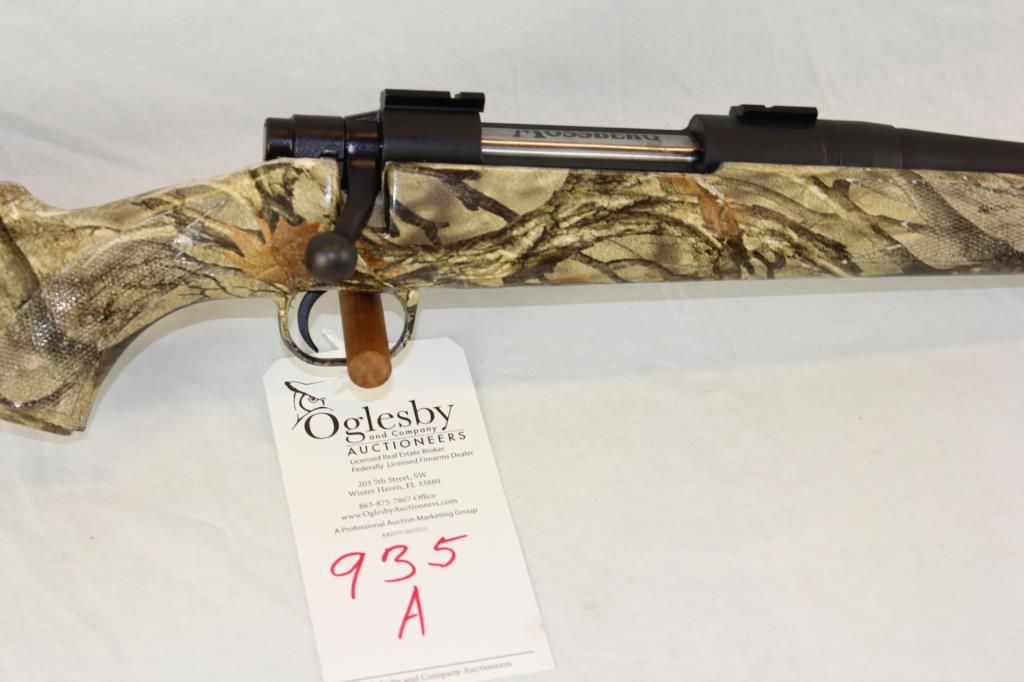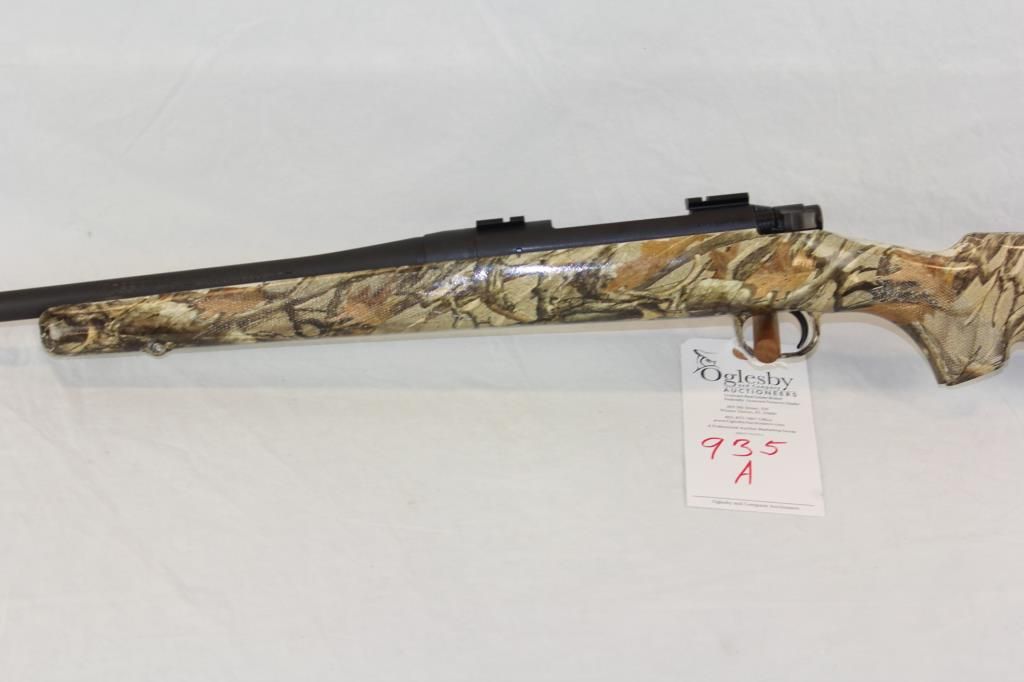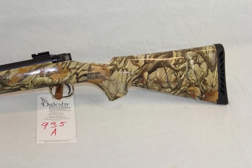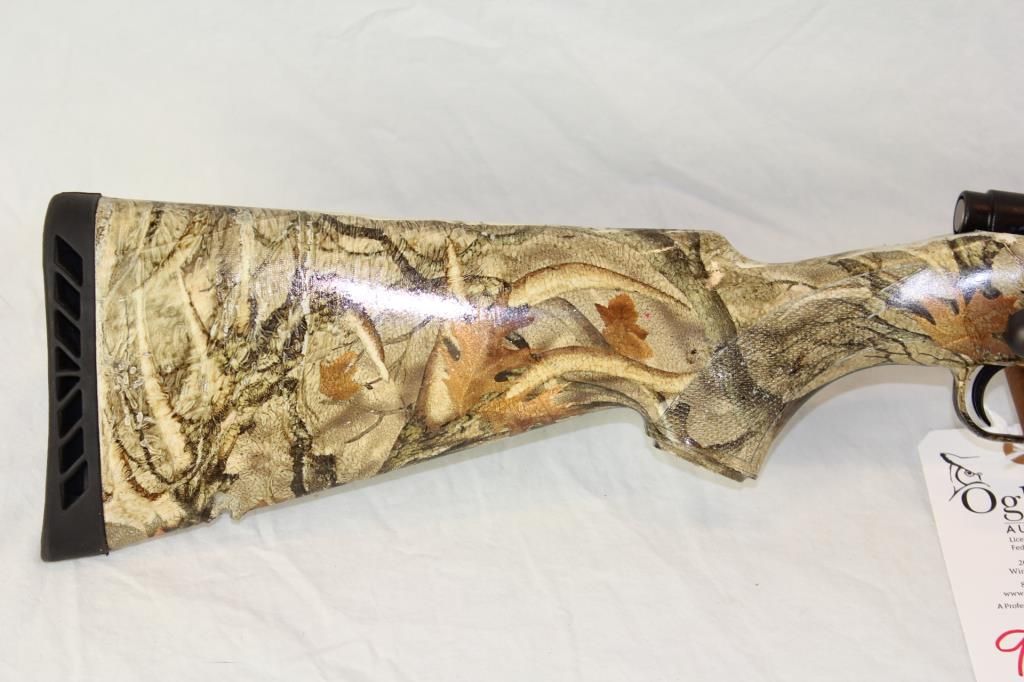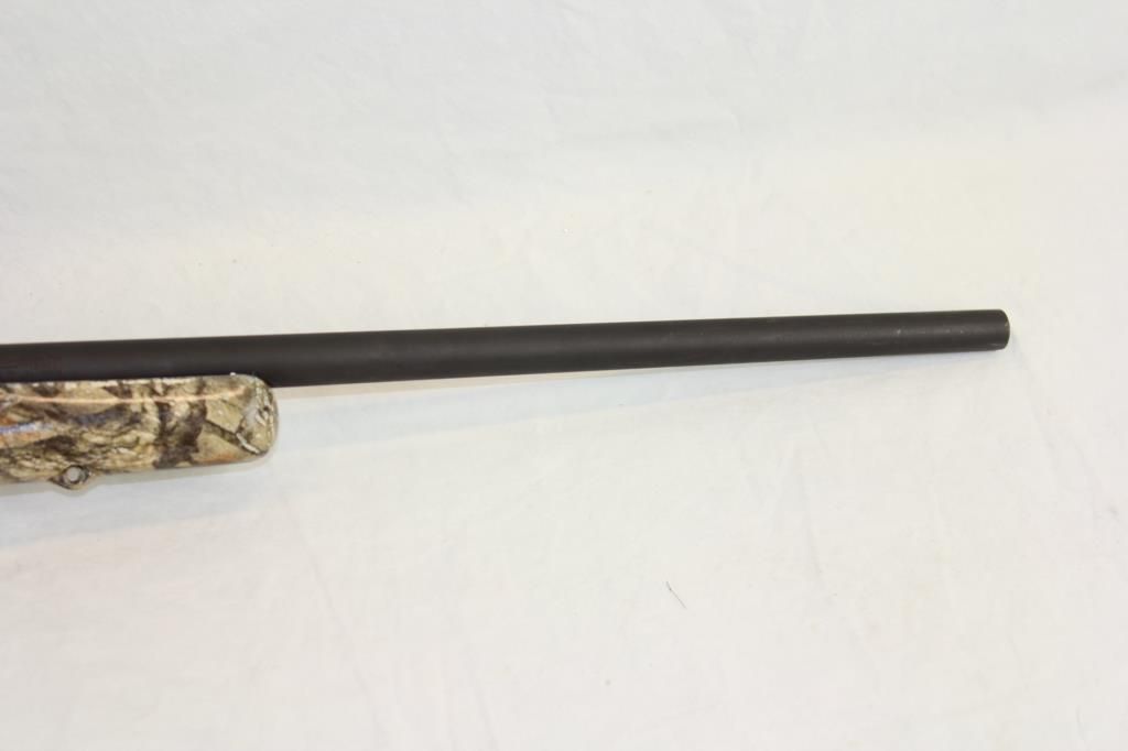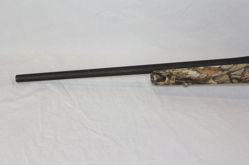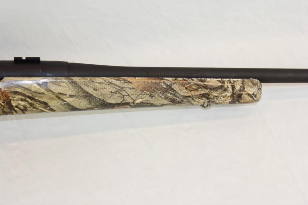 22" Barrel, Matte Black Finish on Receiver & Barrel. Camo Finish on Synthetic Stock. Missing a little camo finish on top of stock. Weaver Style Scope Bases. Broken lower sling attach point on stock. Very good to excellent condition.